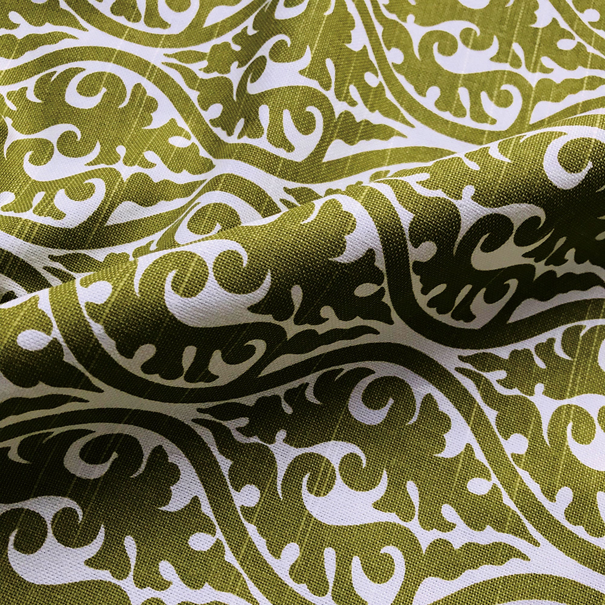 Moss Green Traditional Ogee Cotton Upholstery Fabric 54"