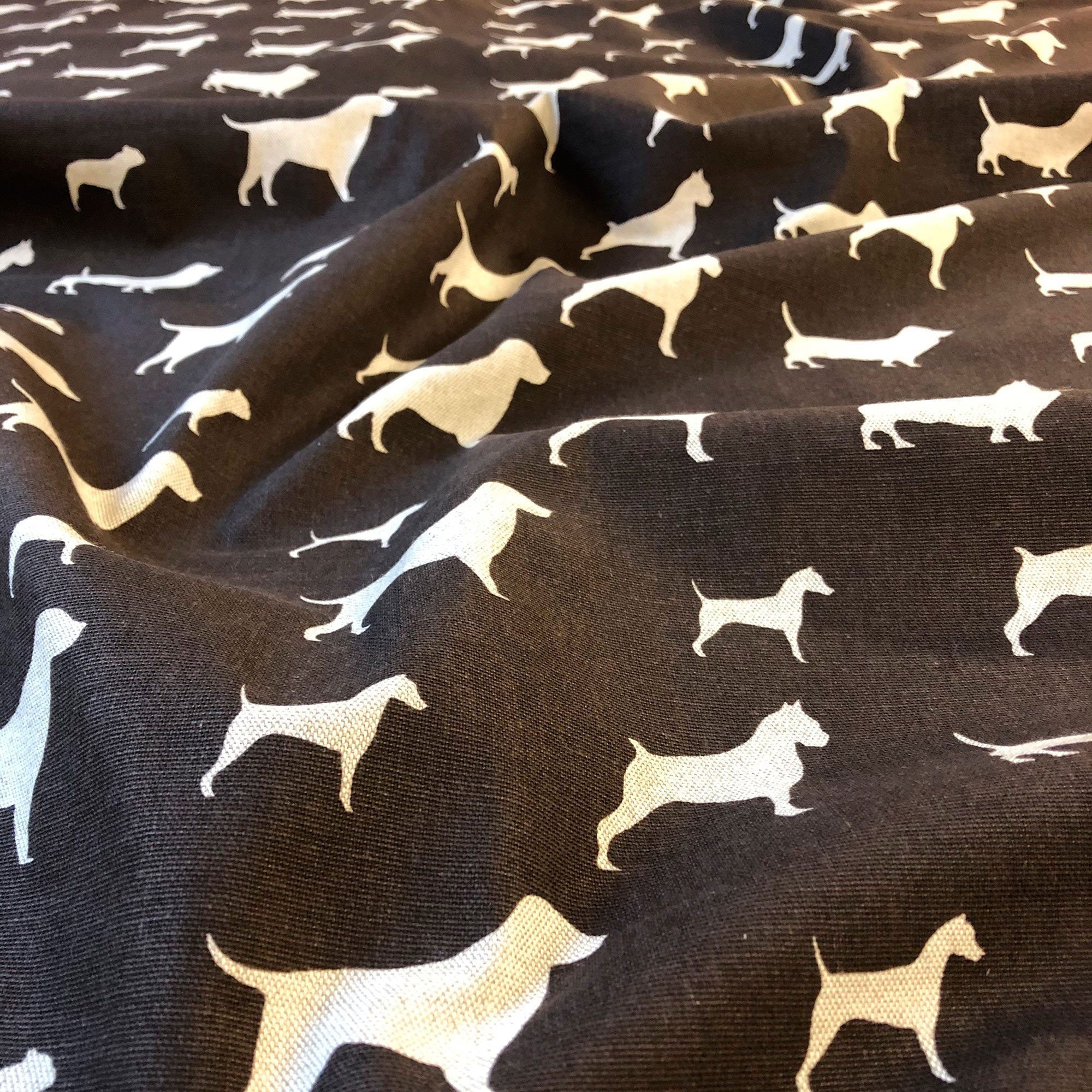 Brown and White Dog Silhouette Cotton Upholstery Fabric 54"