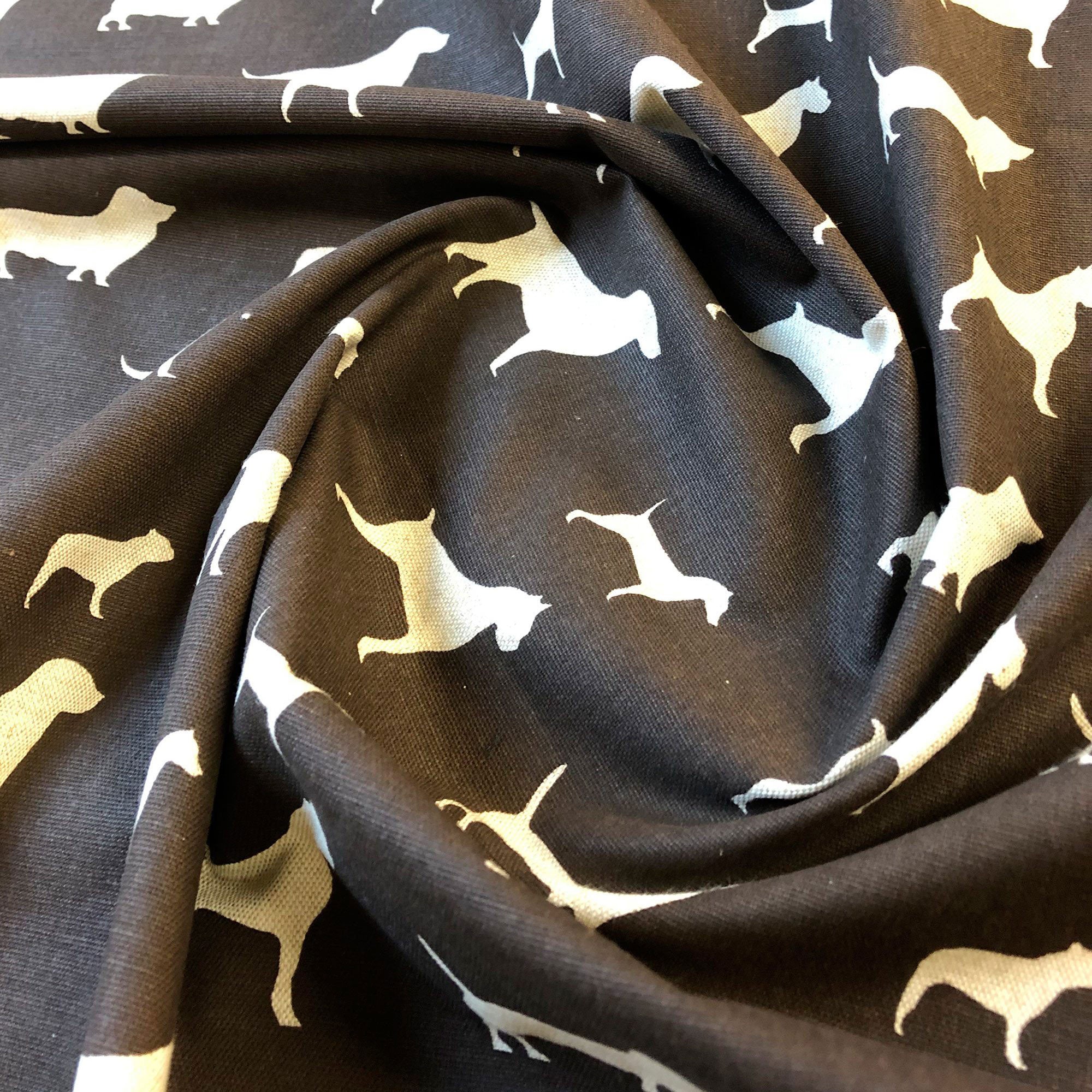 This luxurious Brown and White Dog Silhouette Cotton Upholstery Fabric 54" meets flair with versatility, offering the perfect personal touch for any novelty pet aesthetic. Designed and crafted by skilled textile artisans this fabric is made to last and never compromises on quality. All fabric is sold by the yard in 1-yard increments. Unfortunately, we do not accept returns on fabric orders but swatches are available.