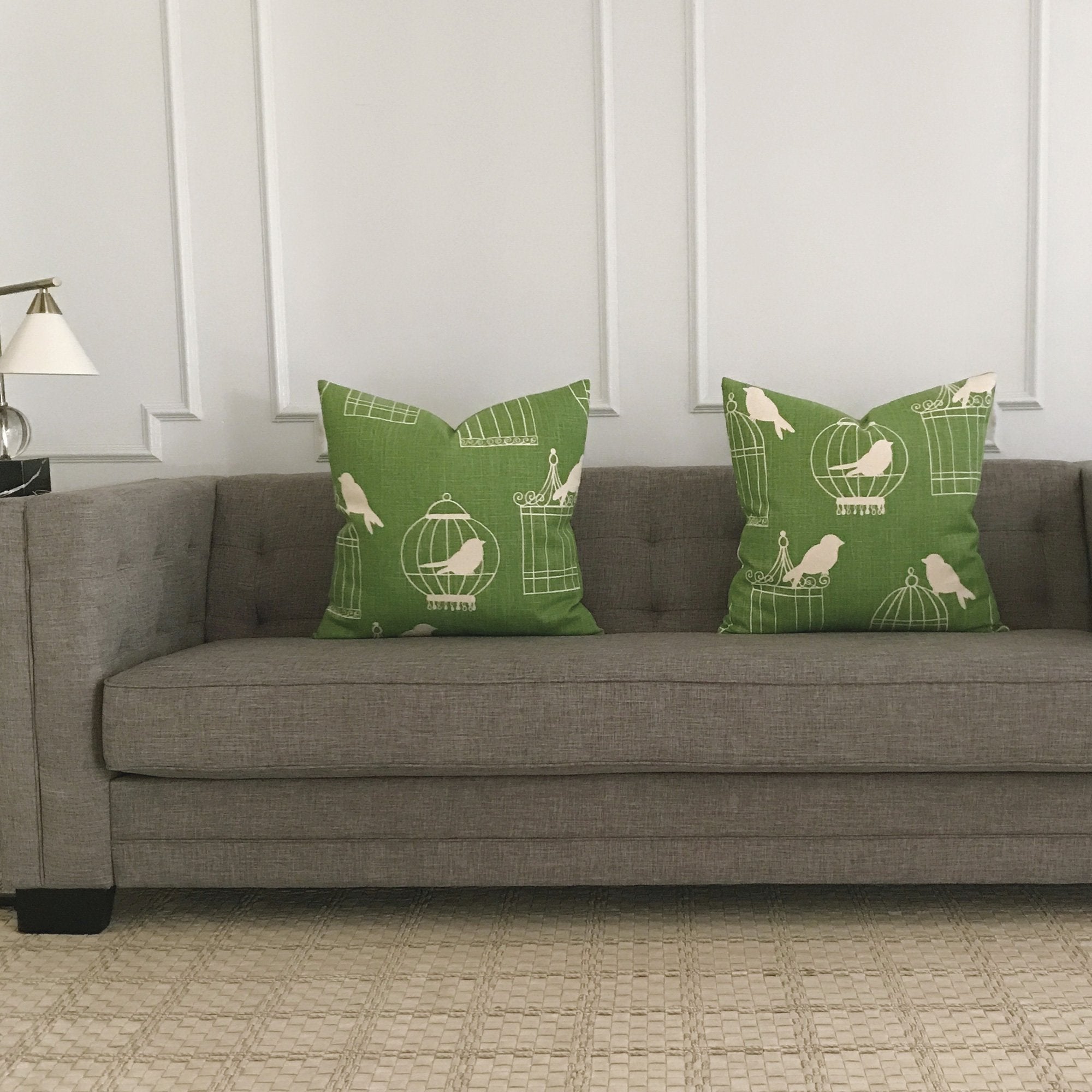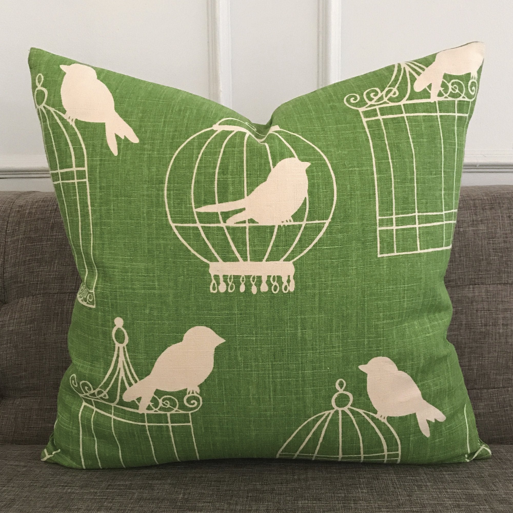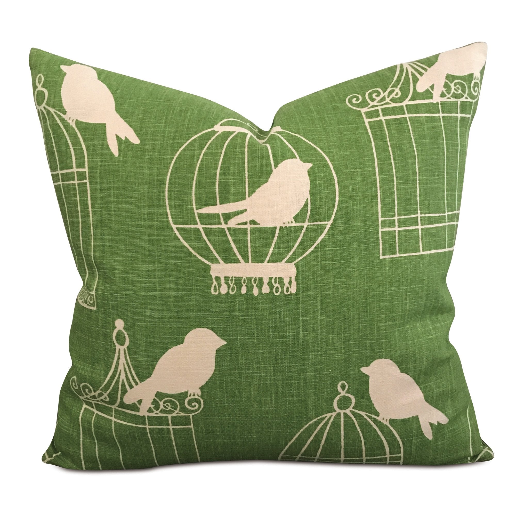 Spring Green Songbird Linen Throw Pillow Cover 22x22