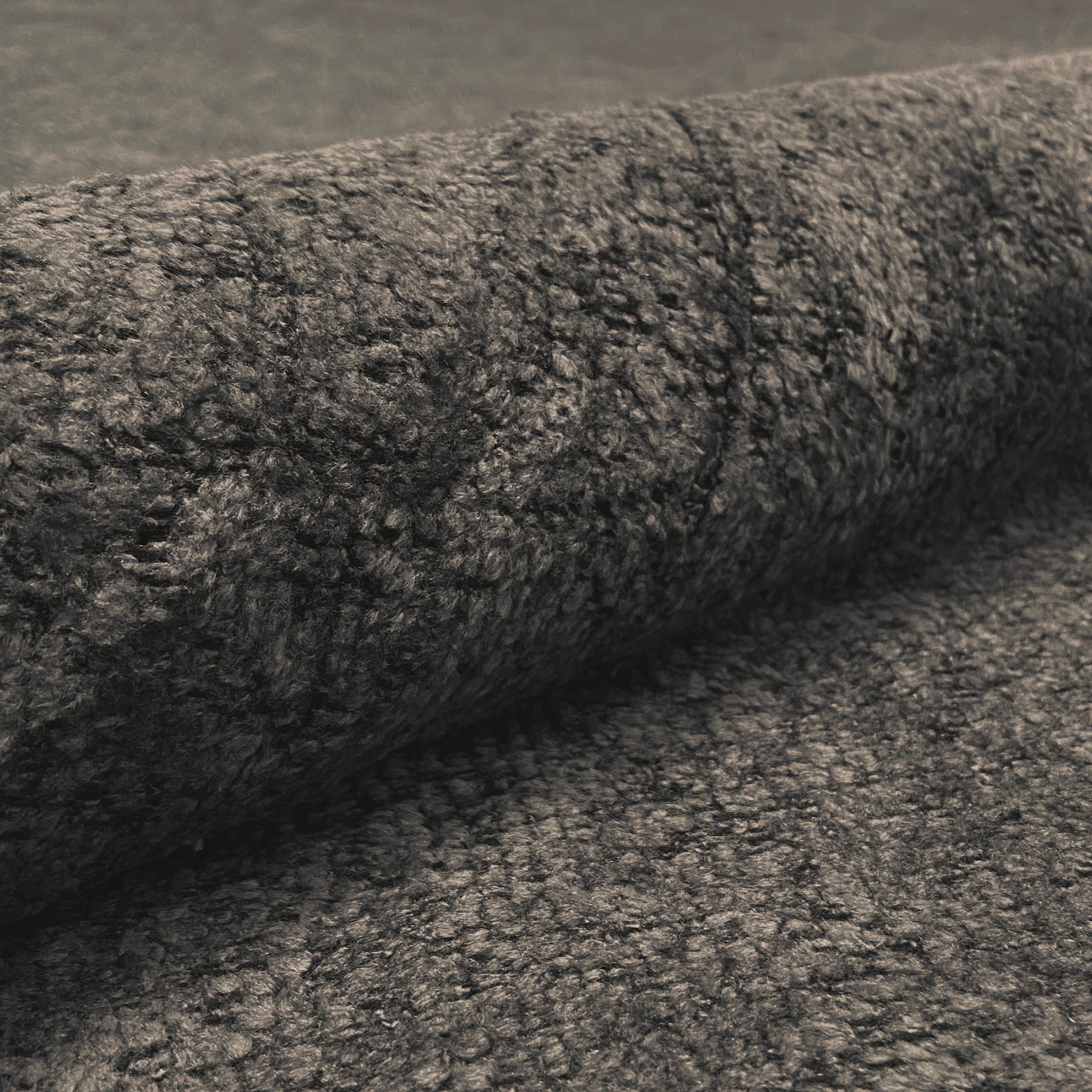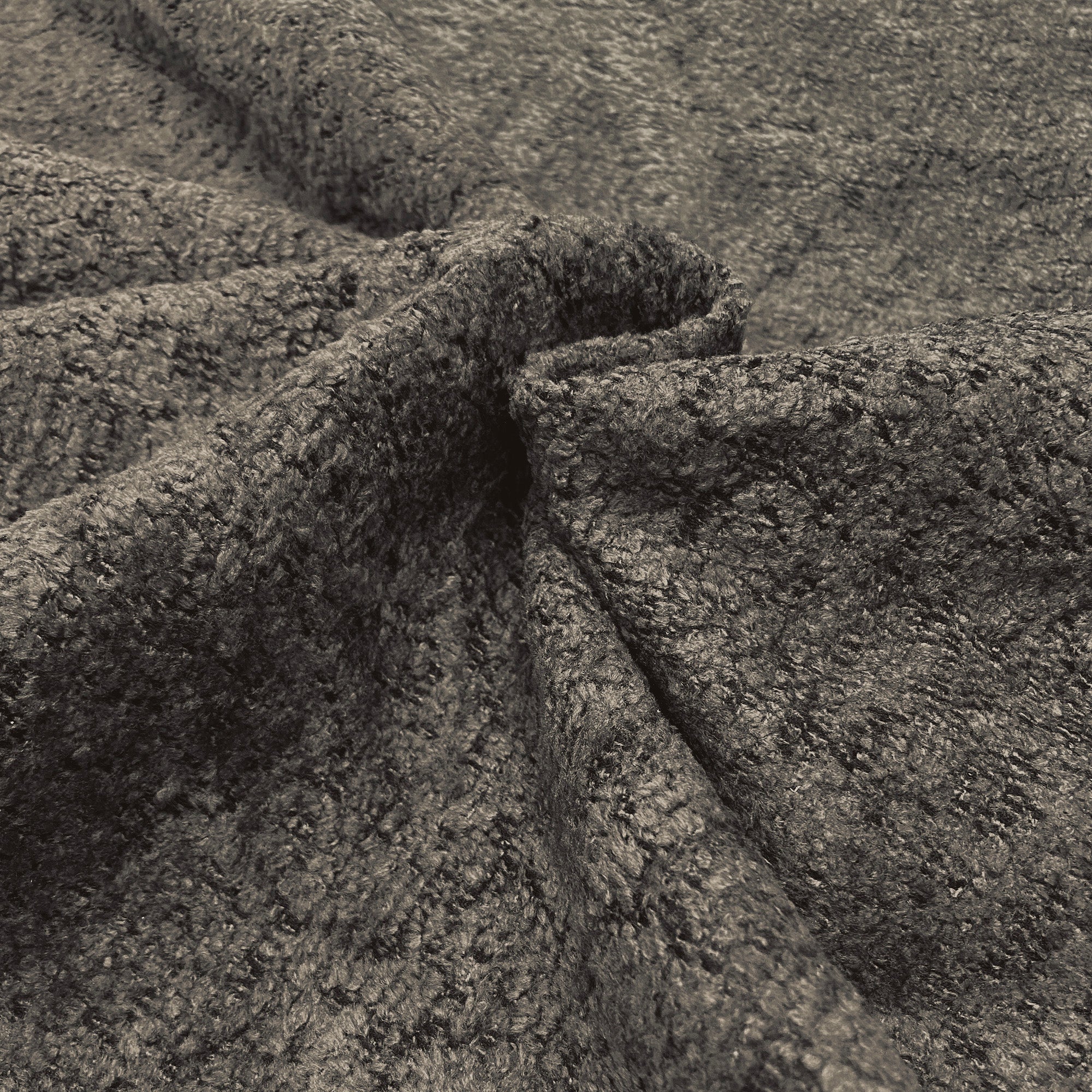 Wooly, chunky boucle textured upholstery fabric in walnut brown.