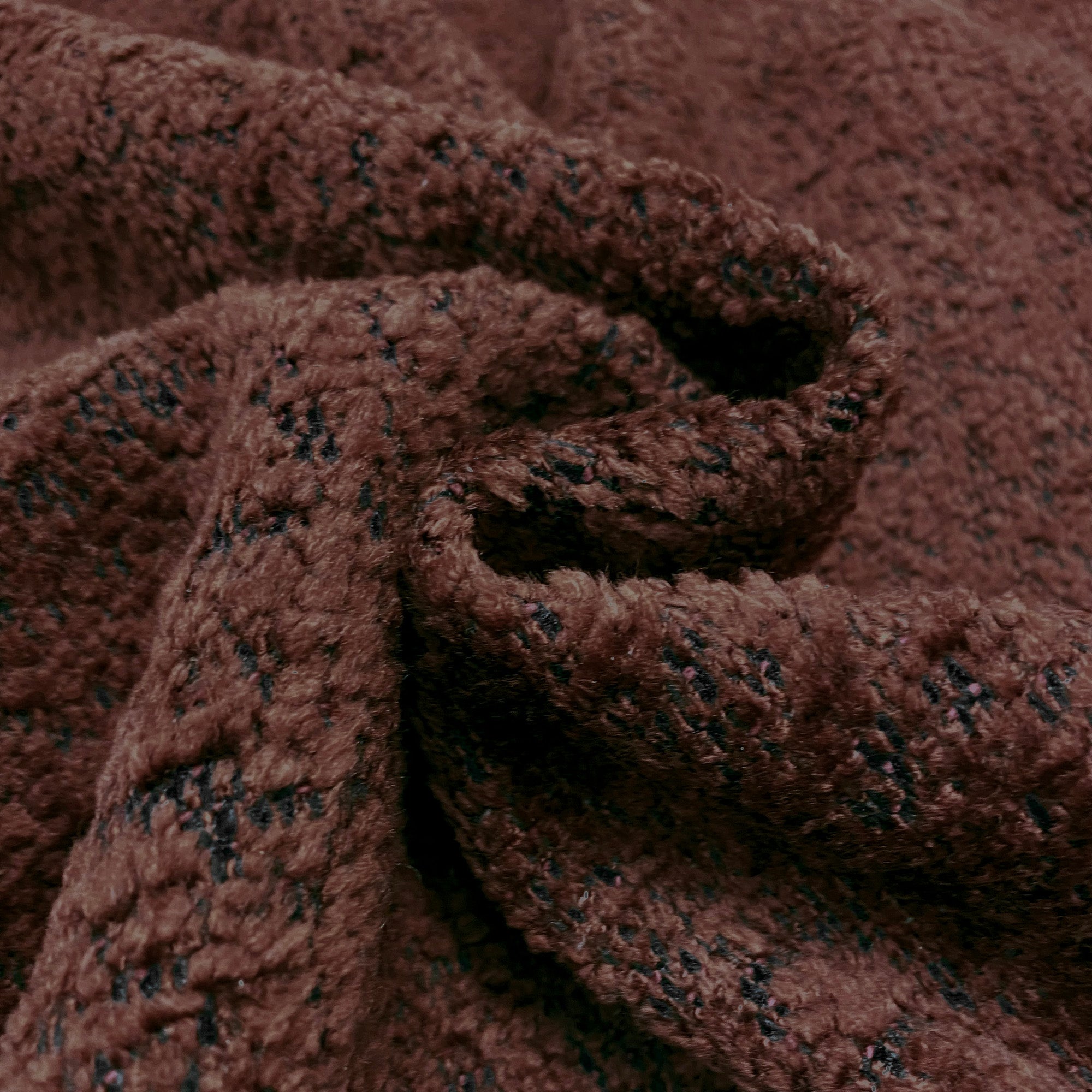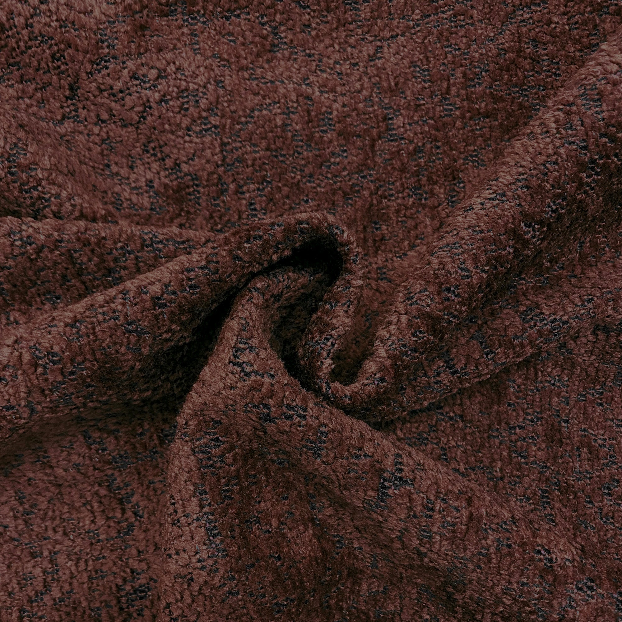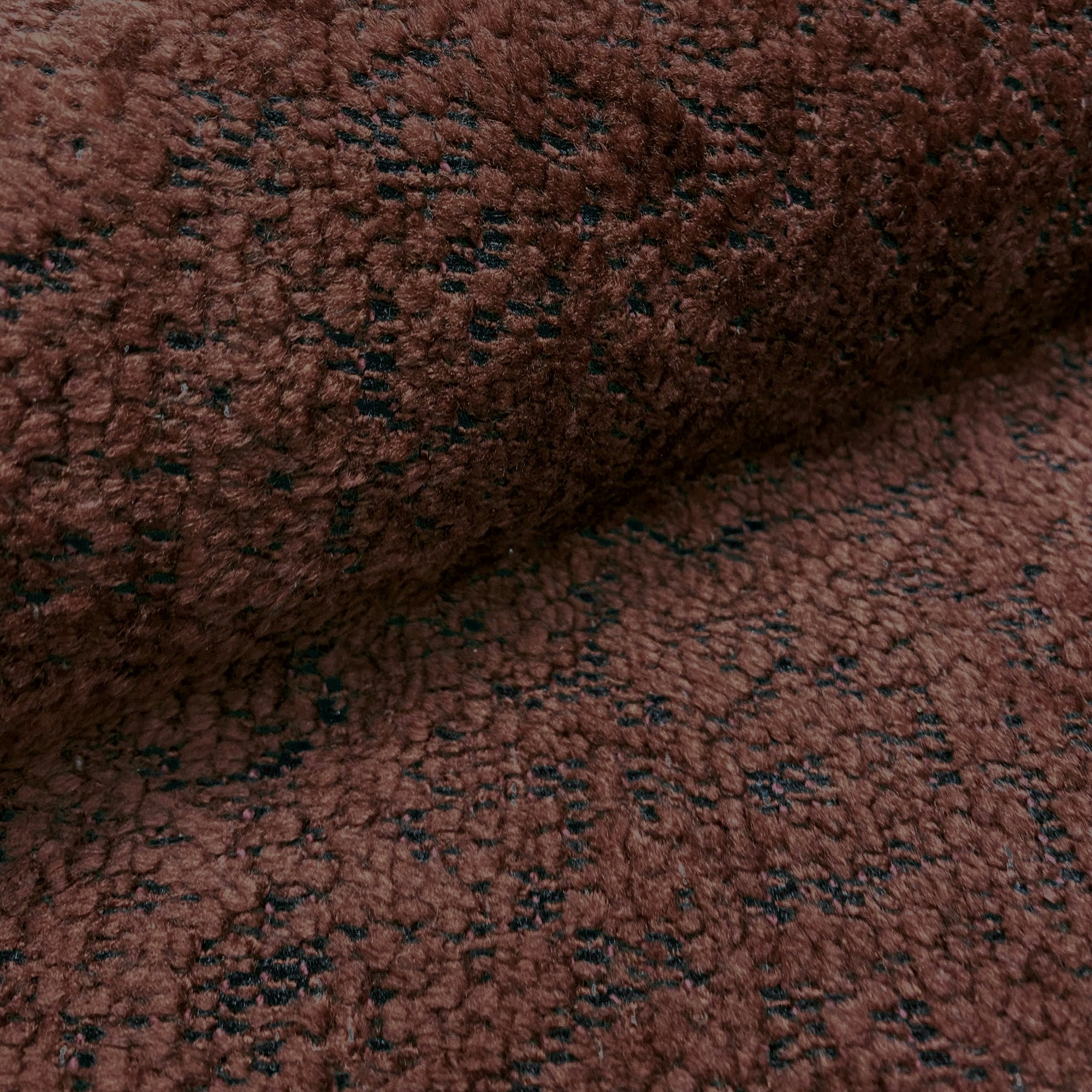 Wooly, chunky boucle textured upholstery fabric in wine red.