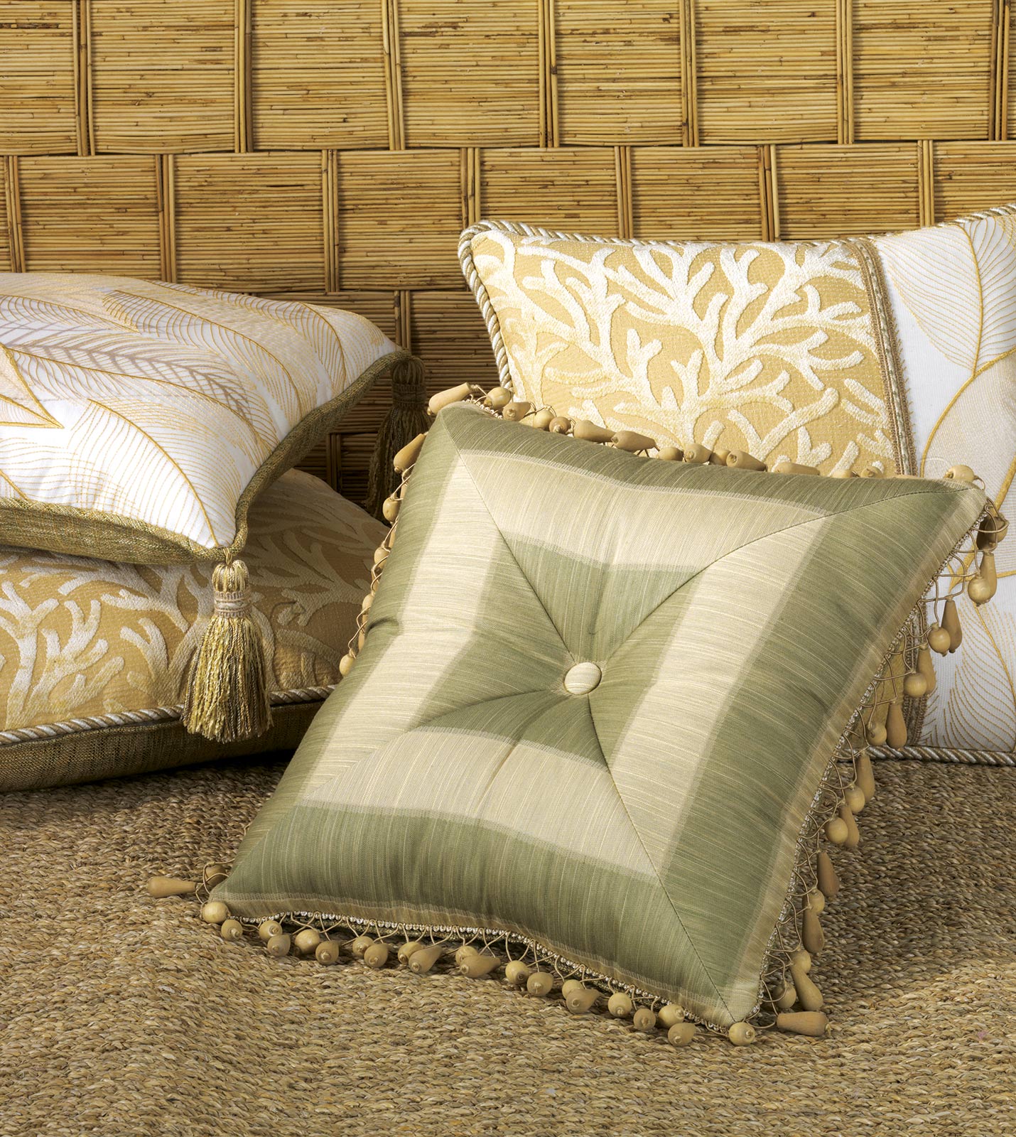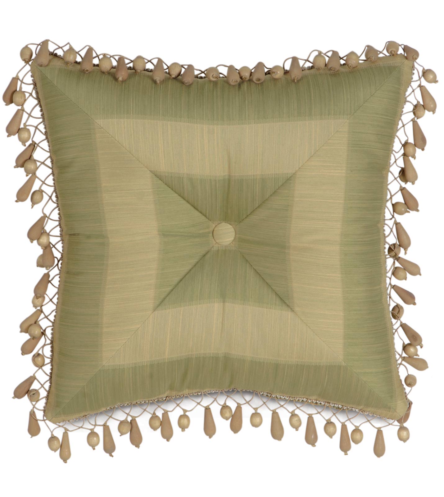 • Button-tufted decorative pillow with stripe fabric in aloe