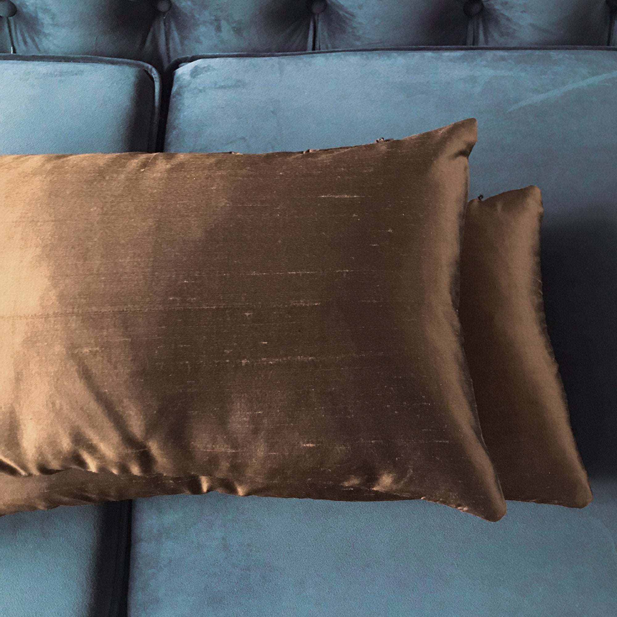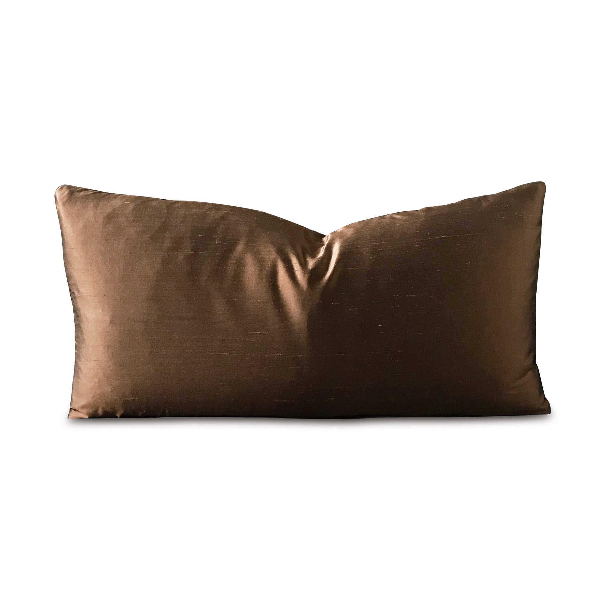 - Lumbar pillow cover in chocolate brown silk for a luxe, refined look