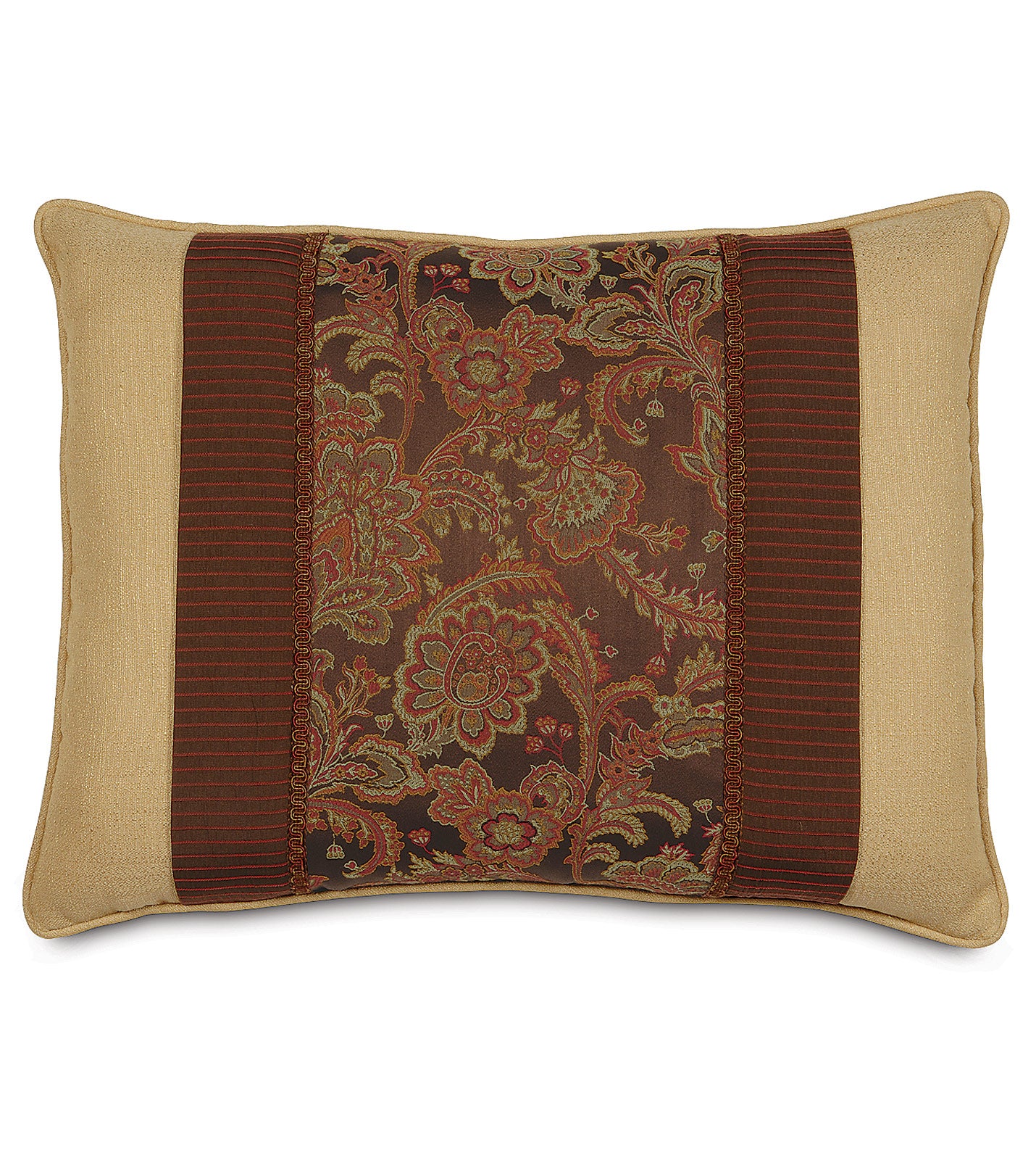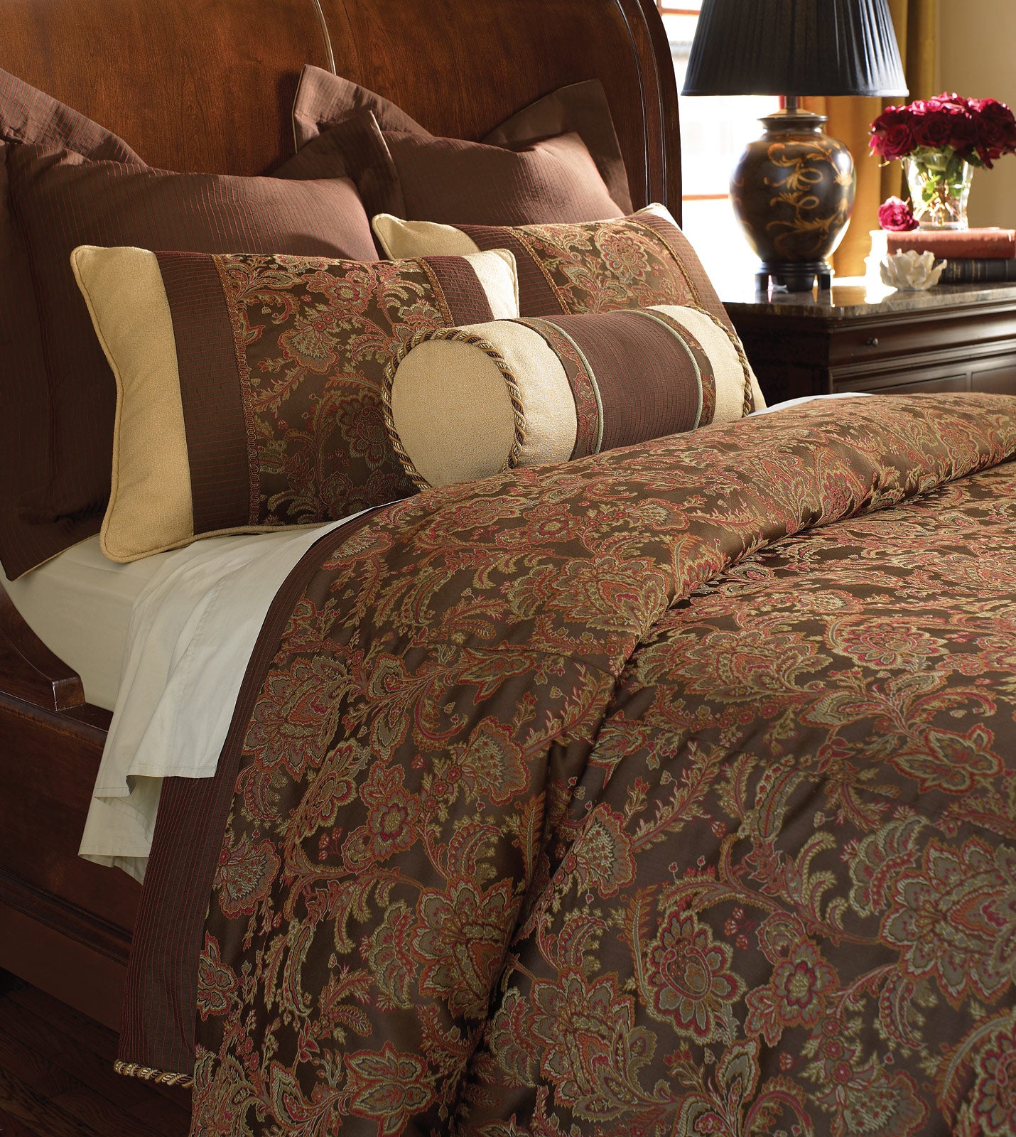 - Standard sham featuring an exquisite floral insert in mahogany