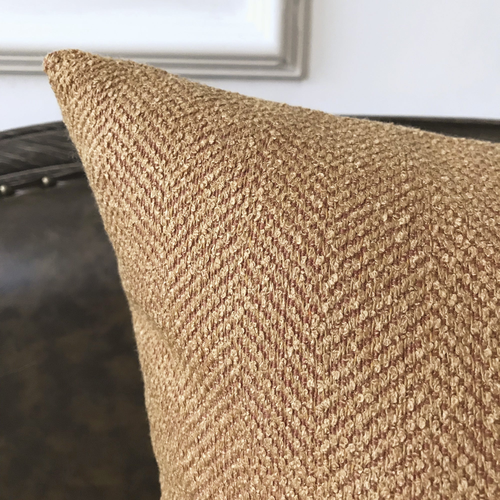 Tan Textured Herringbone Woven Decorative Pillow Cover