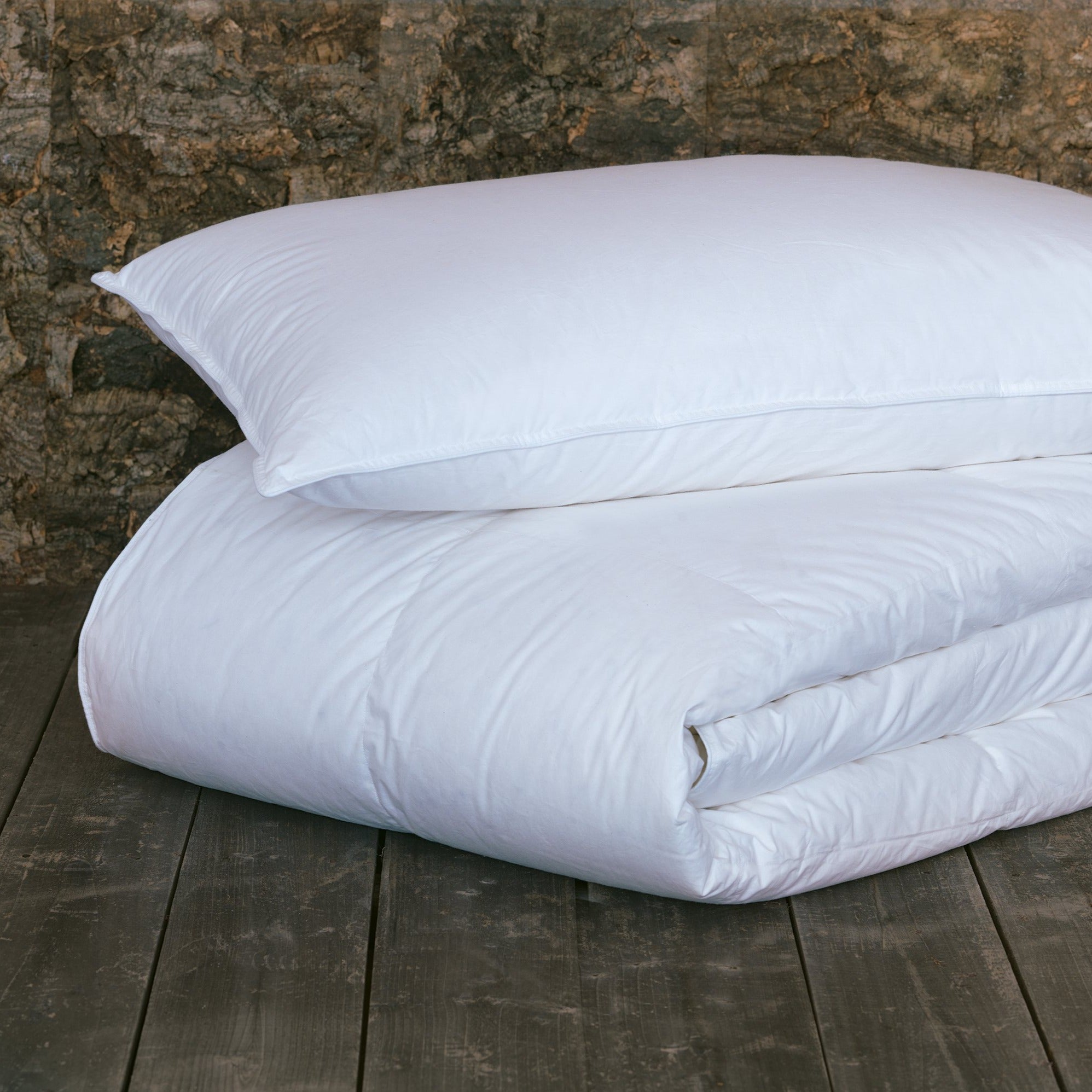 Give your guests a perfect night’s sleep with Charleston. This down-alternative comforter features a hypoallergenic microfiber fill that mimics the soft feel and insulation of down. Its plush, all-season weight comforter features a baffle box design in a 230 thread count cambric cotton shell and corner loops for attachment to duvets. Made in the USA.