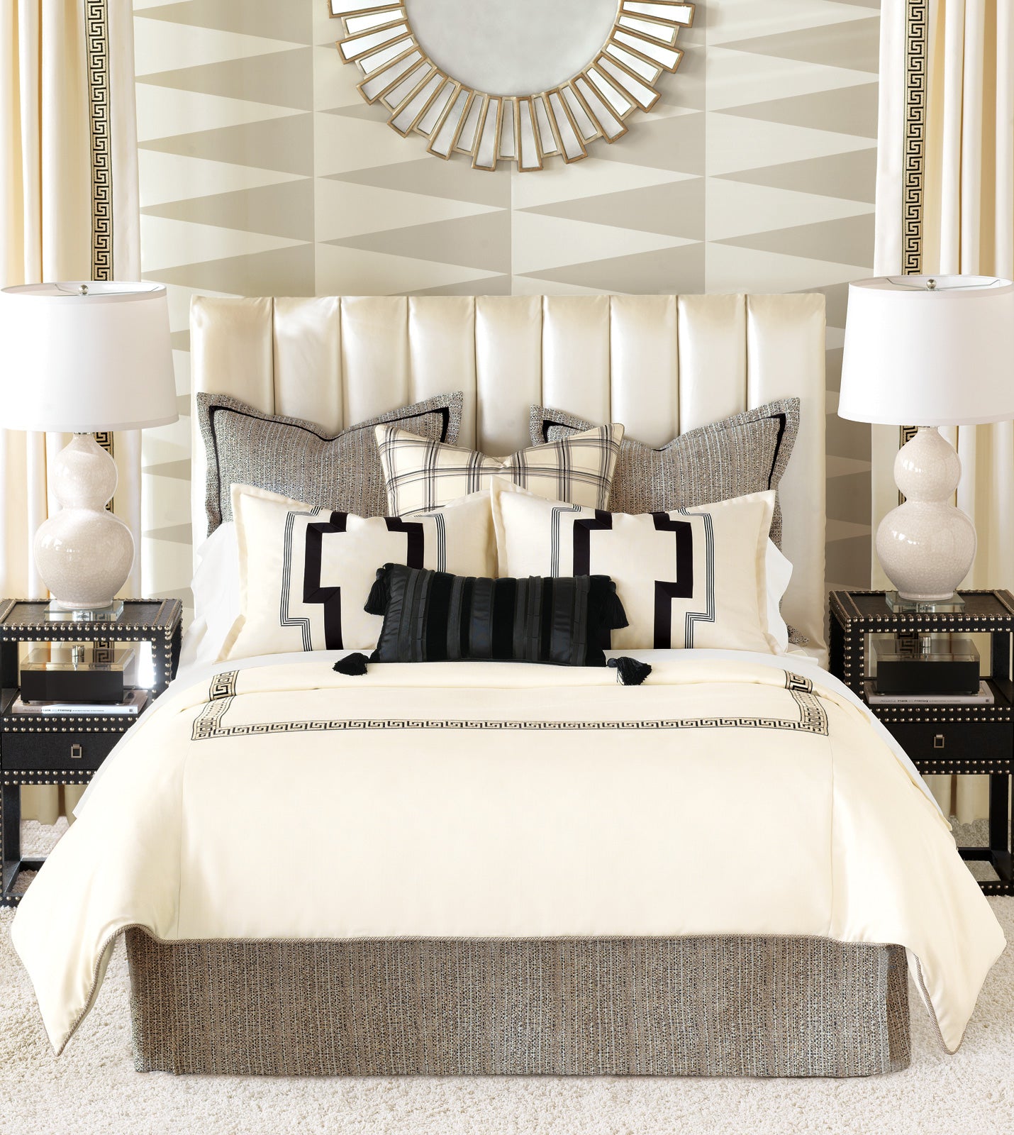 - Textured gray bedskirt