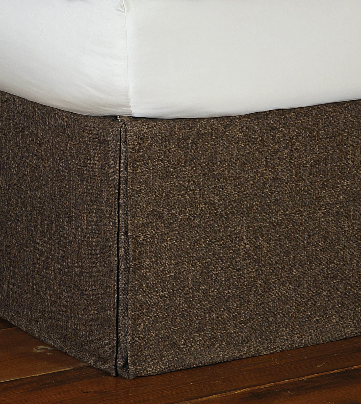 - Textured brown straight bedskirt