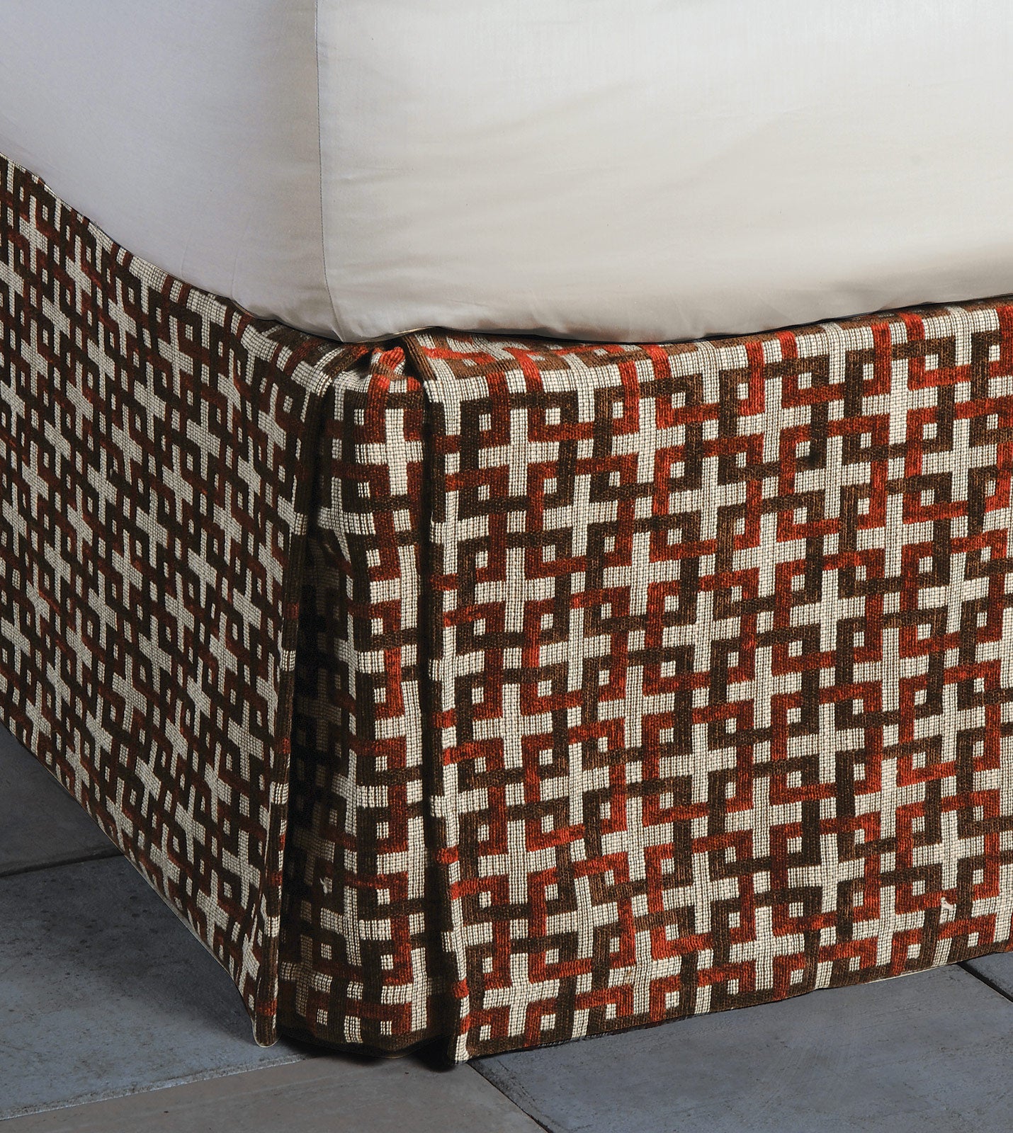 - Straight bedskirt in woven geometric fabric