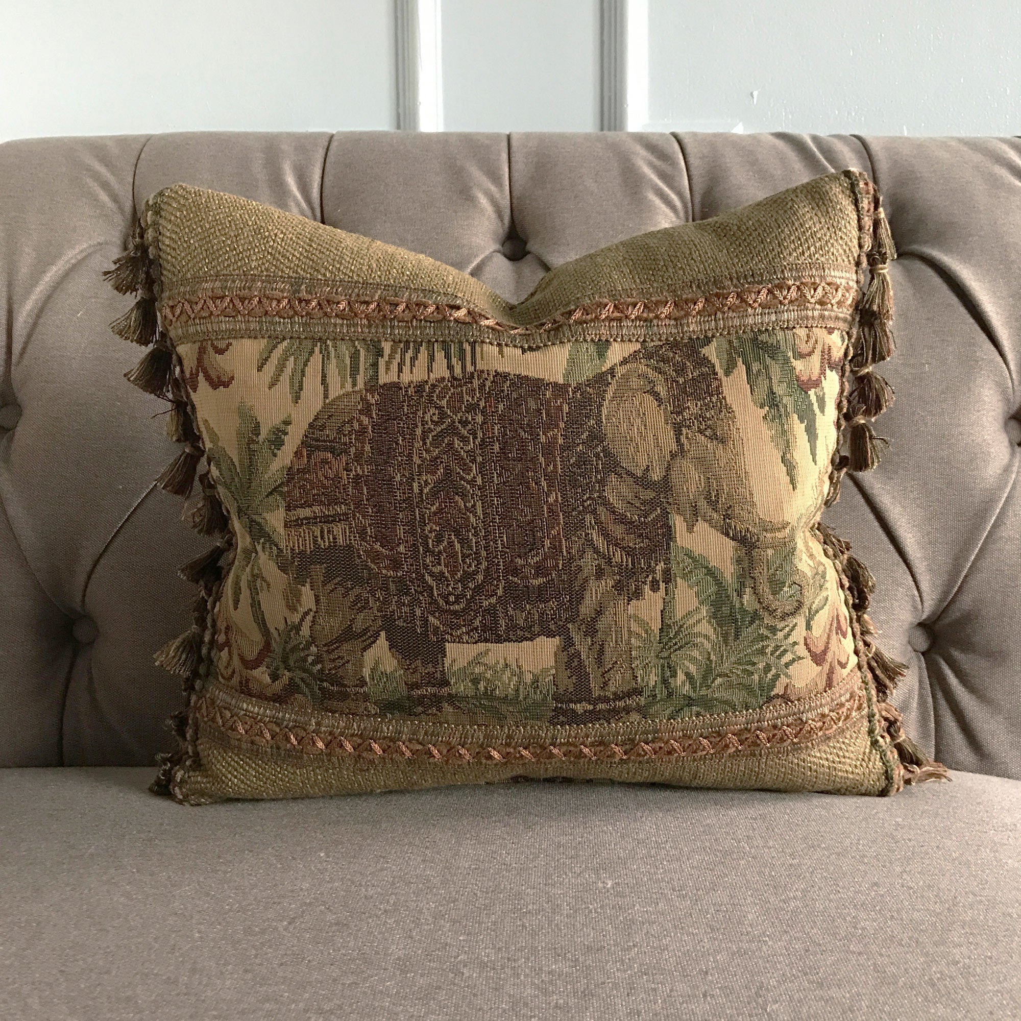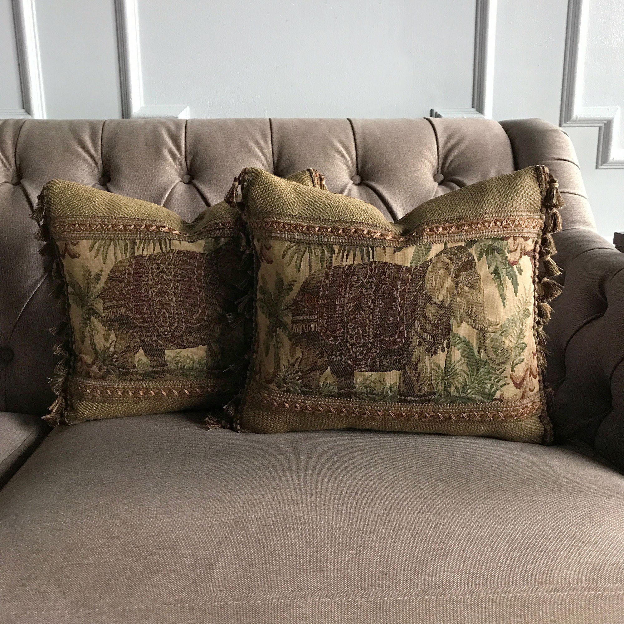 Boho Exotic Elephant Vintage Tapestry Lumbar Pillow Cover 14x16