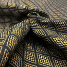 Old Hollywood-inspired jacquard upholstery fabric with a diamond pattern in black and gold.