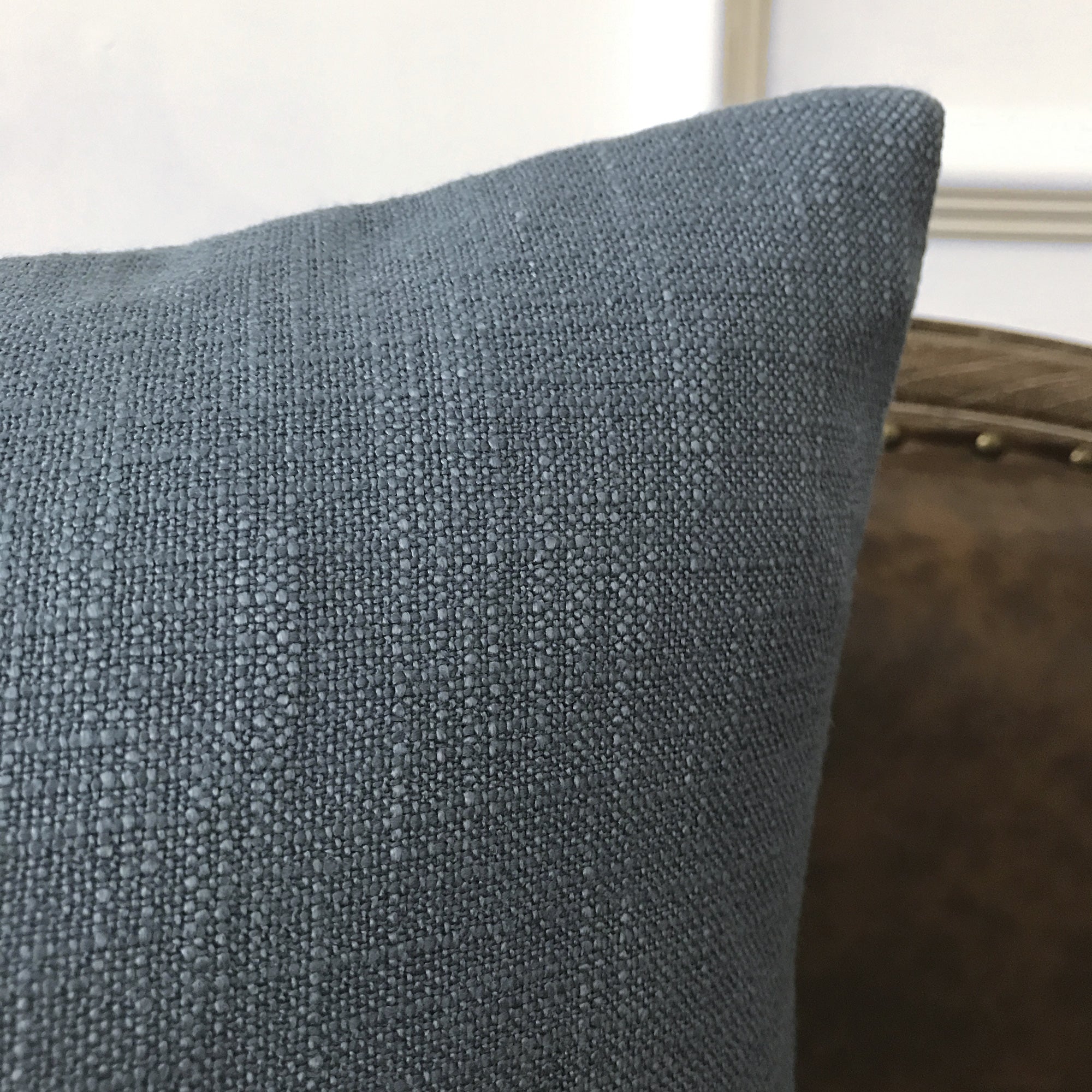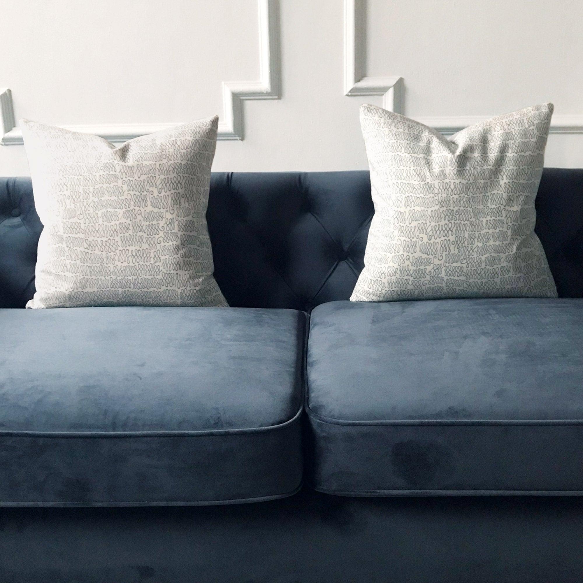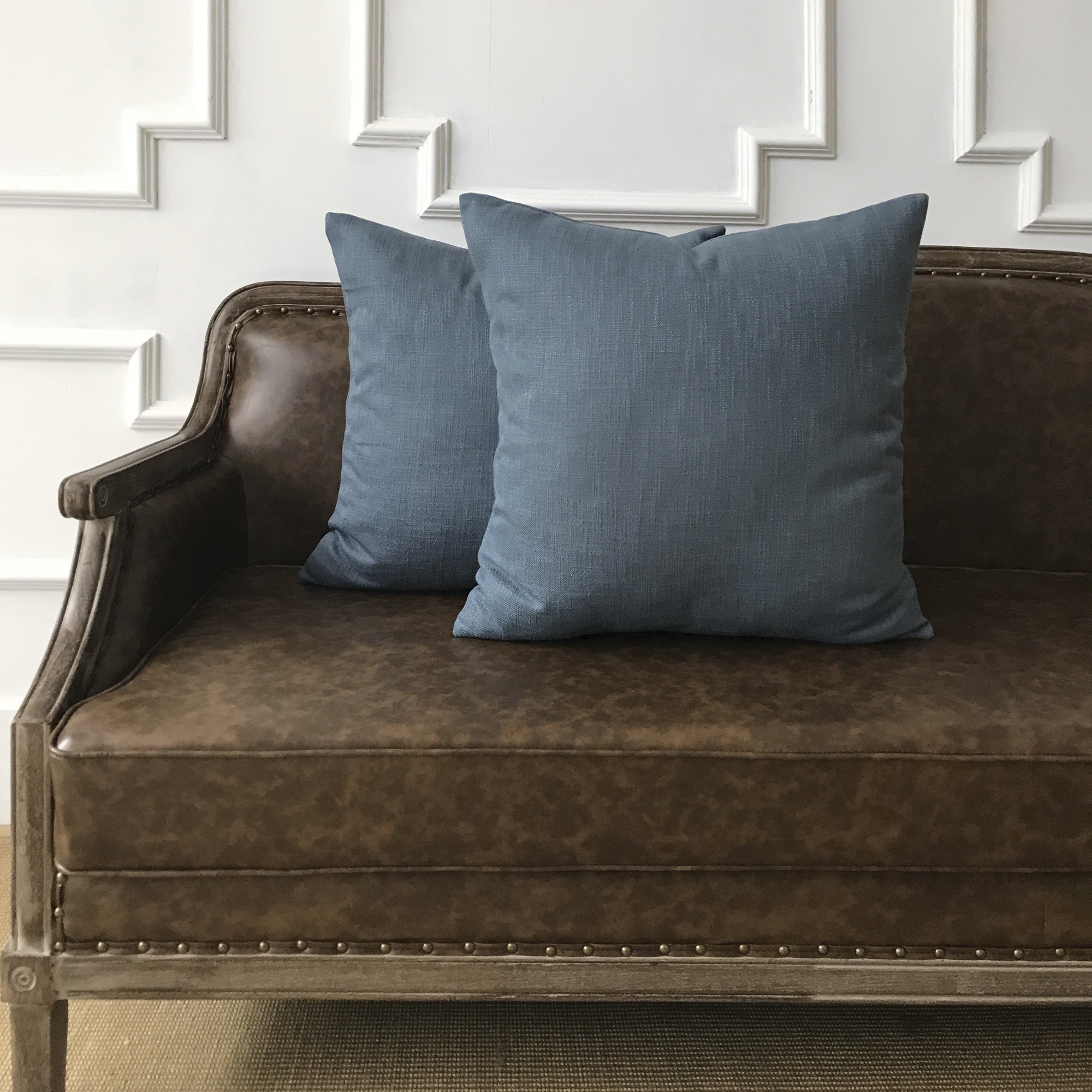 A well-styled space includes different textures and colors. Pairing blue throw pillow covers with woven, velvet, or linen fabrics adds depth and interest.