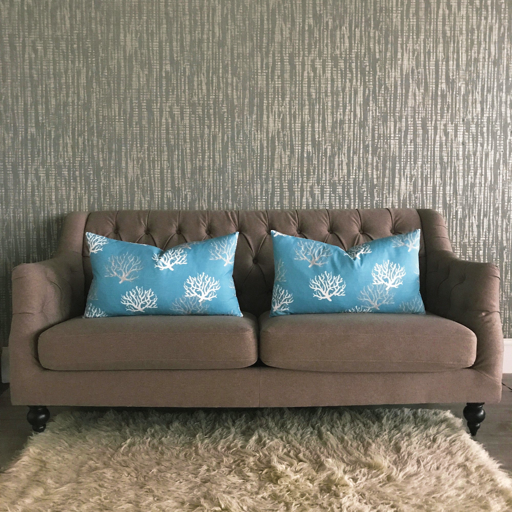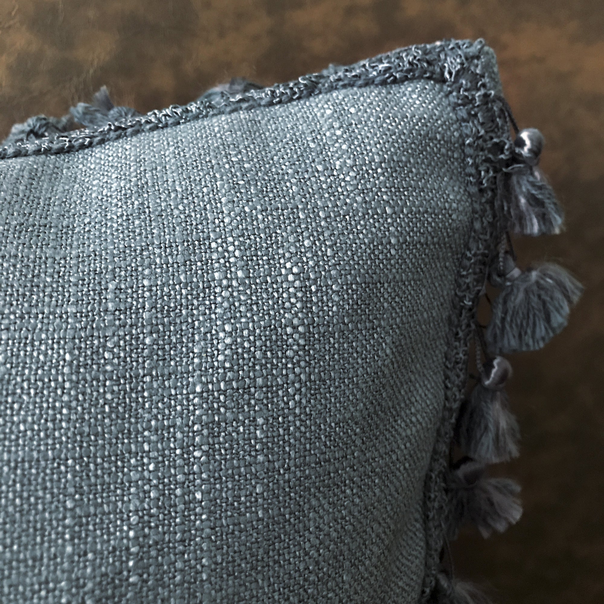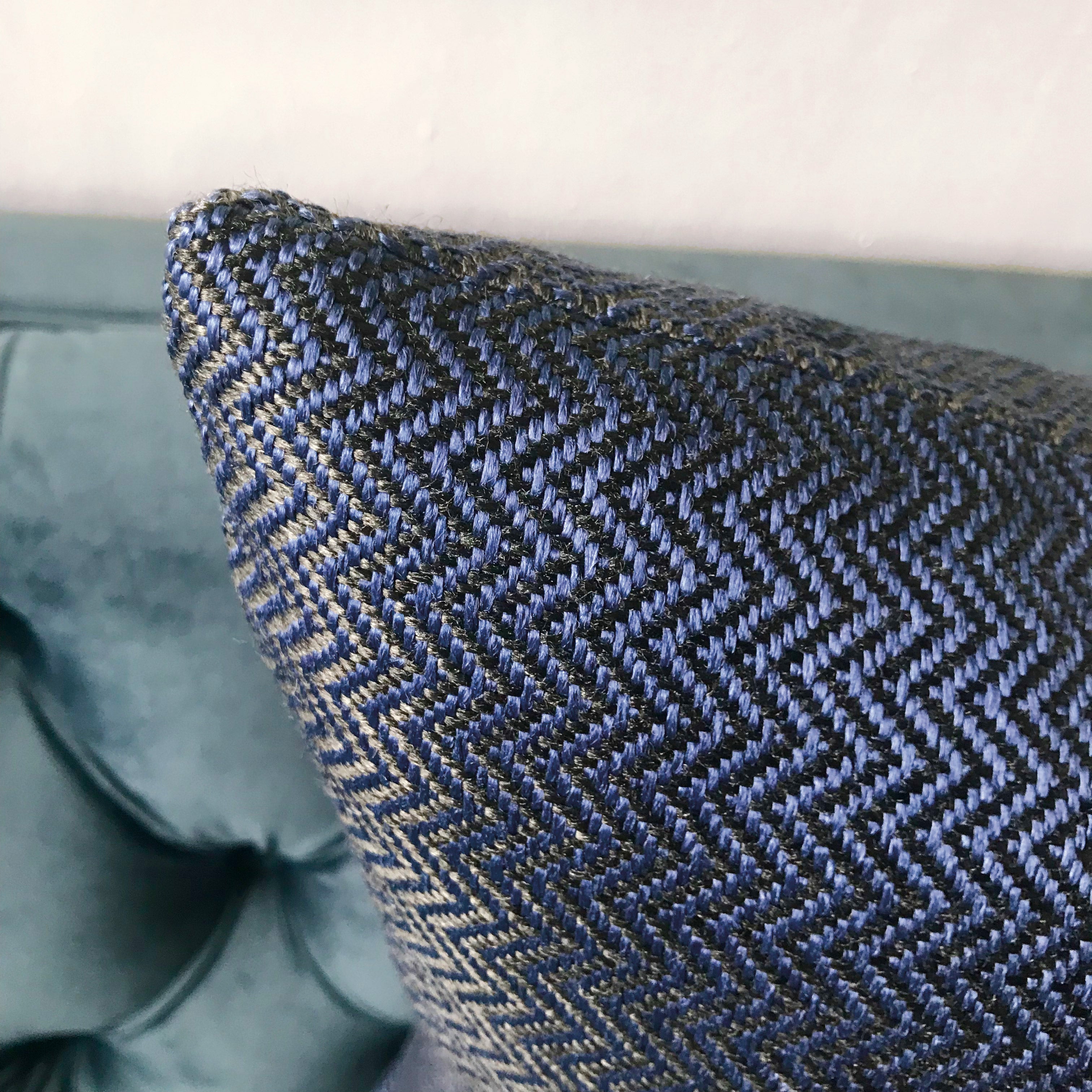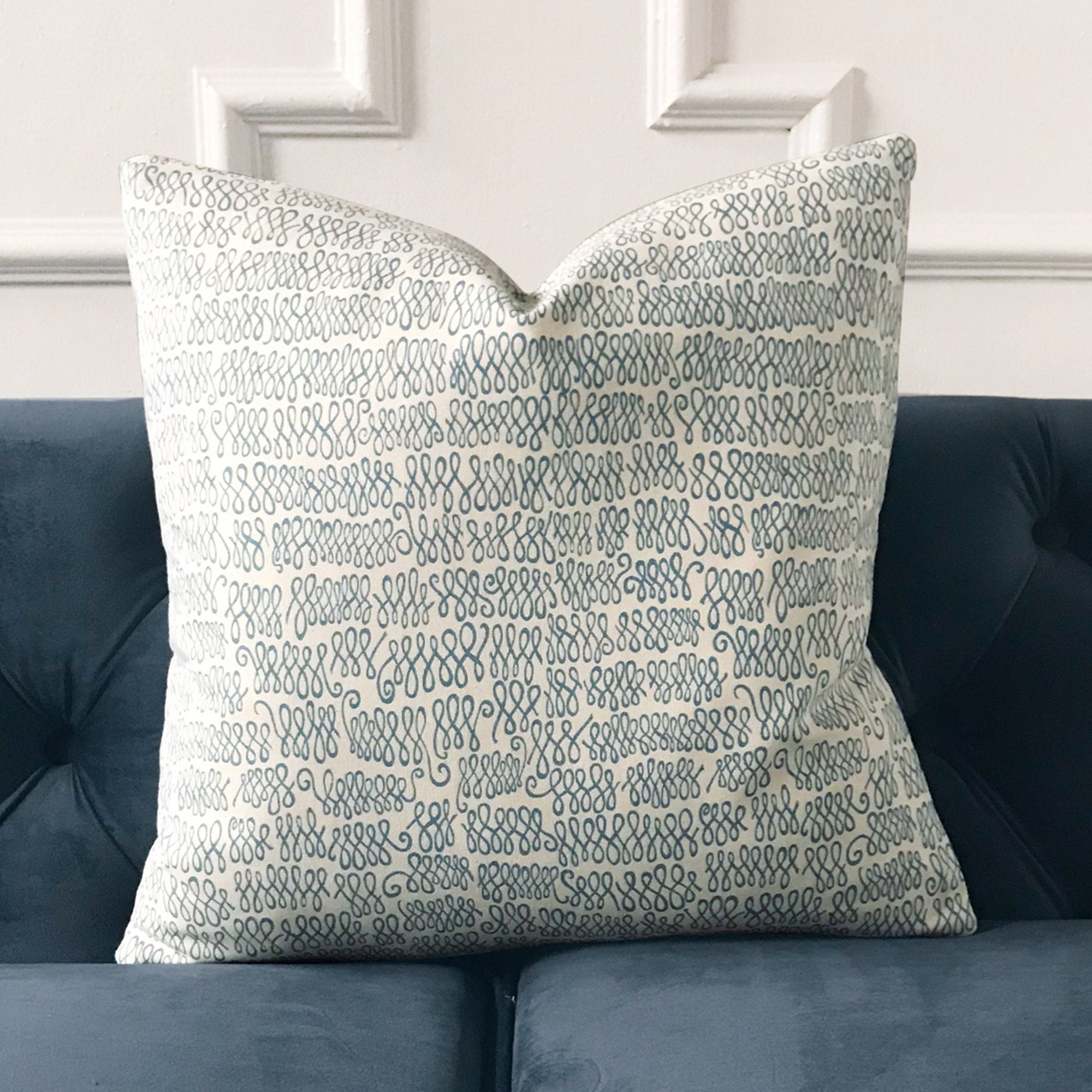 A well-styled space includes different textures and colors. Pairing blue throw pillow covers with woven, velvet, or linen fabrics adds depth and interest.