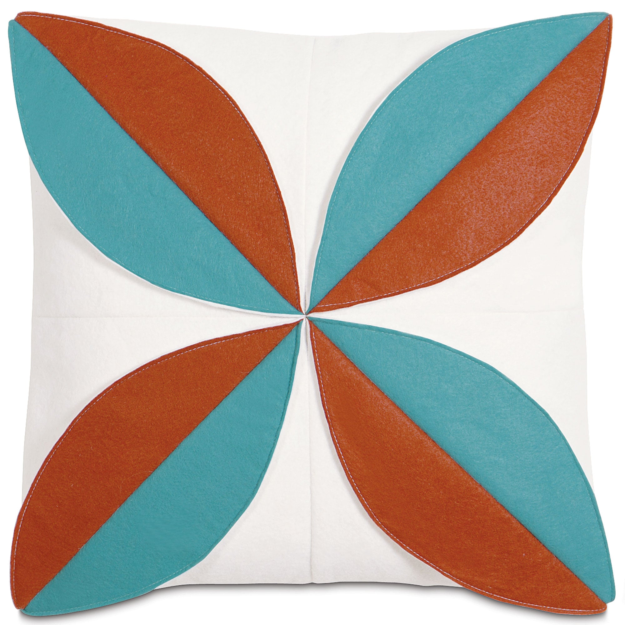 - Decorative pillow with geometric felt applique in muted red and bright teal for a Moroccan aesthetic