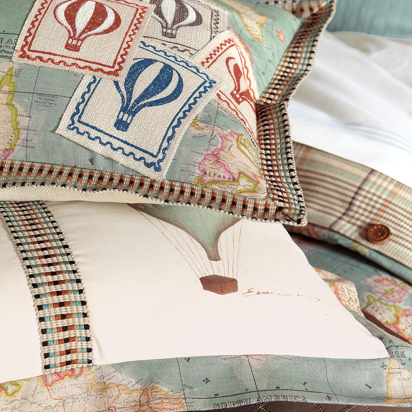 Layering blue pillow covers with lighter blues or textured neutrals creates a well-designed, inviting space.