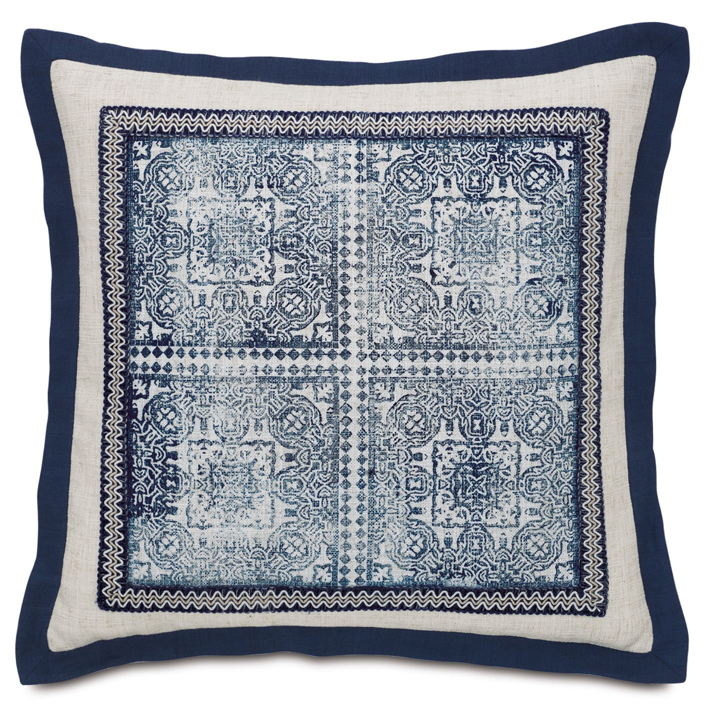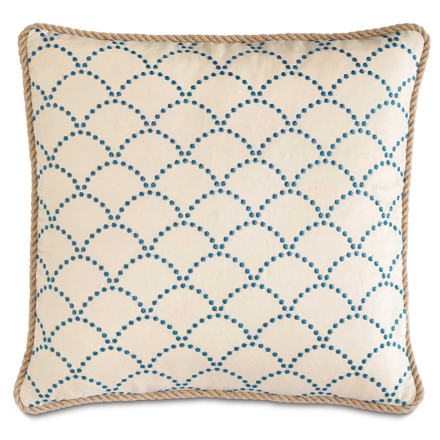Layering blue pillow covers with lighter blues or textured neutrals creates a well-designed, inviting space.