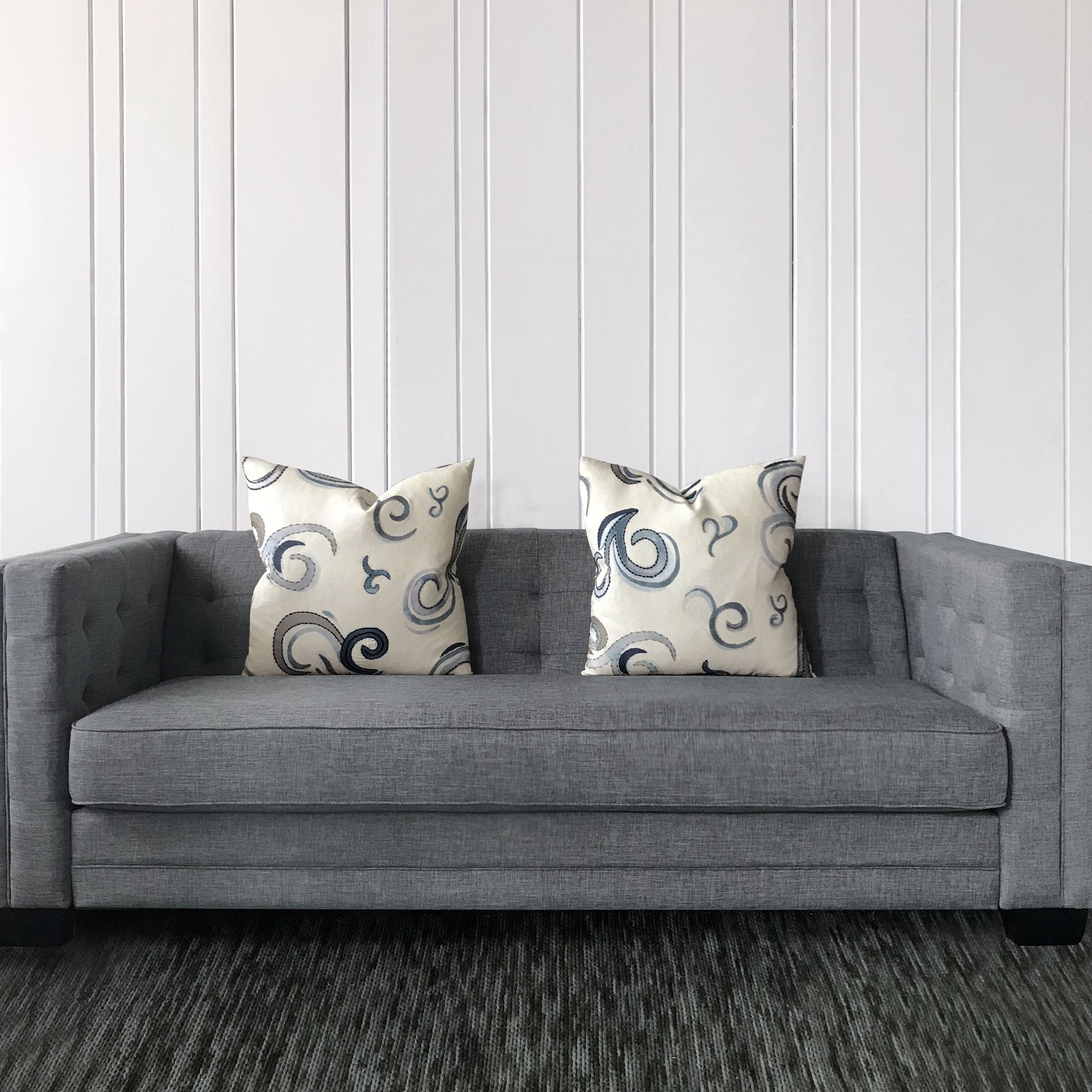 A well-styled space includes different textures and colors. Pairing blue throw pillow covers with woven, velvet, or linen fabrics adds depth and interest.