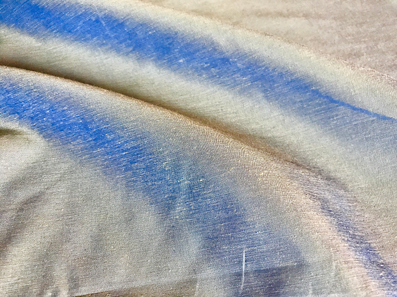 Upholstery fabric in shimmery blue and yellow intertwined fabric for a blue/green shine.