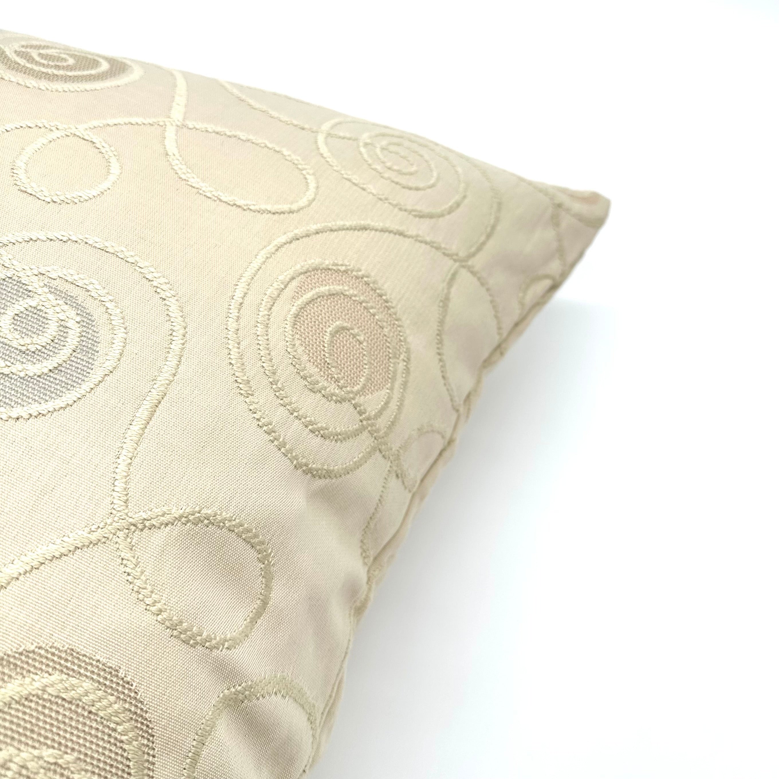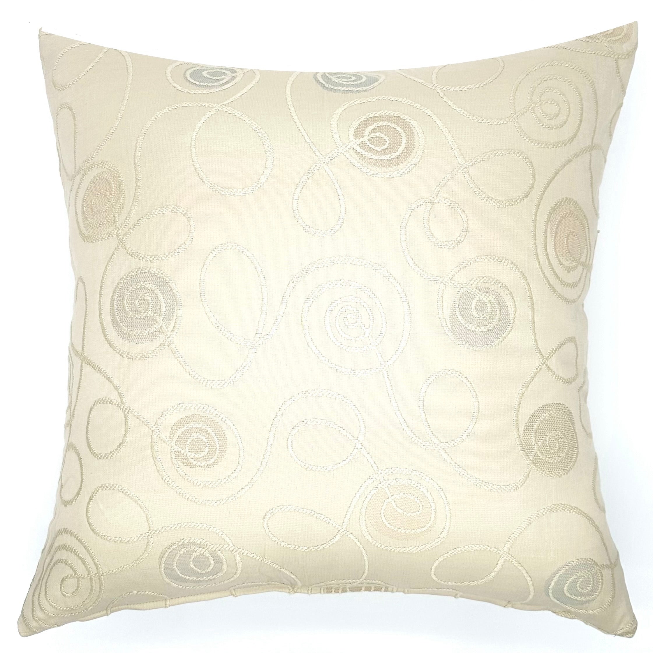 - Decorative pillow cover with a textured swirl pattern in beige, tan, and gray