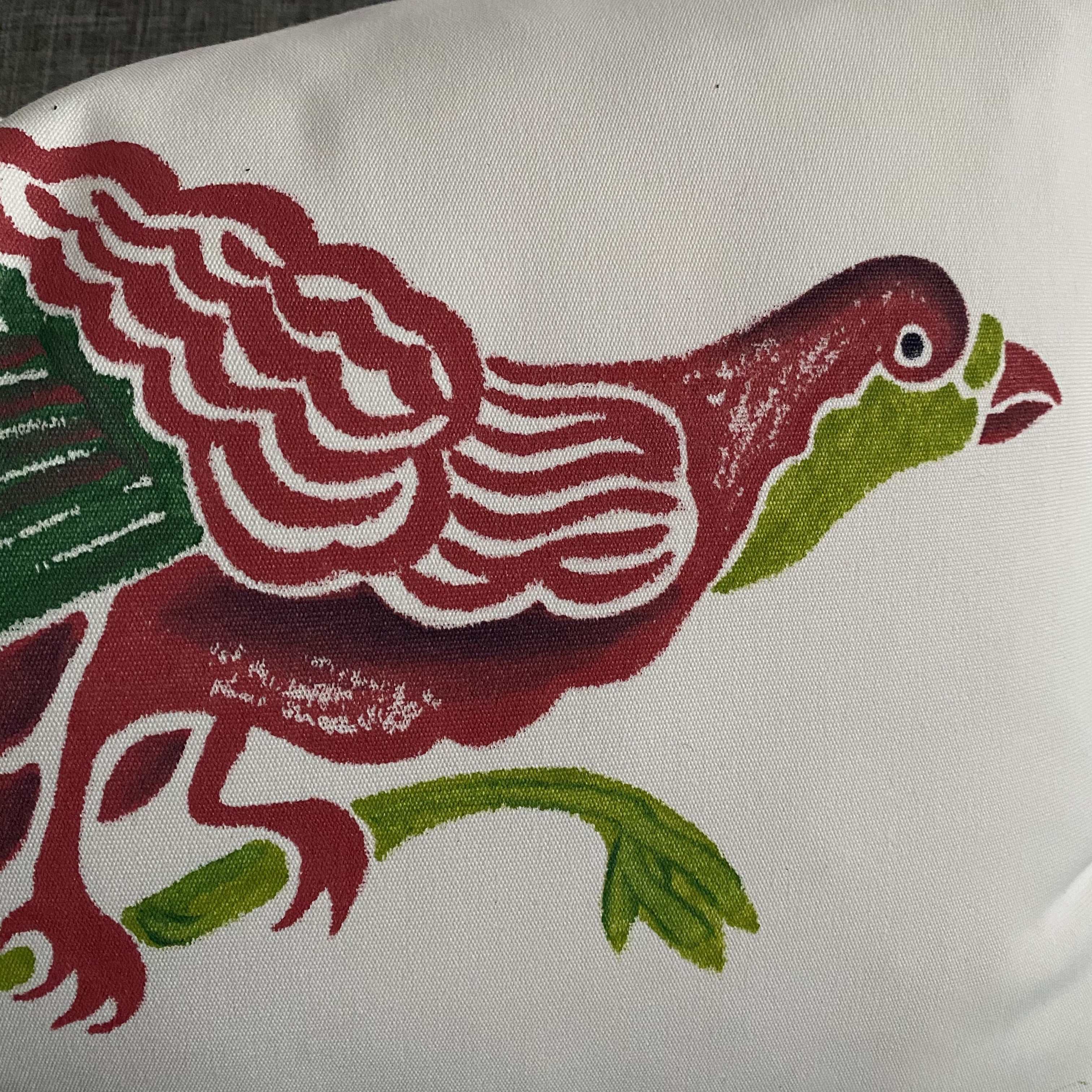 - Linen blend decorative pillow with a hand-painted peacock design on face