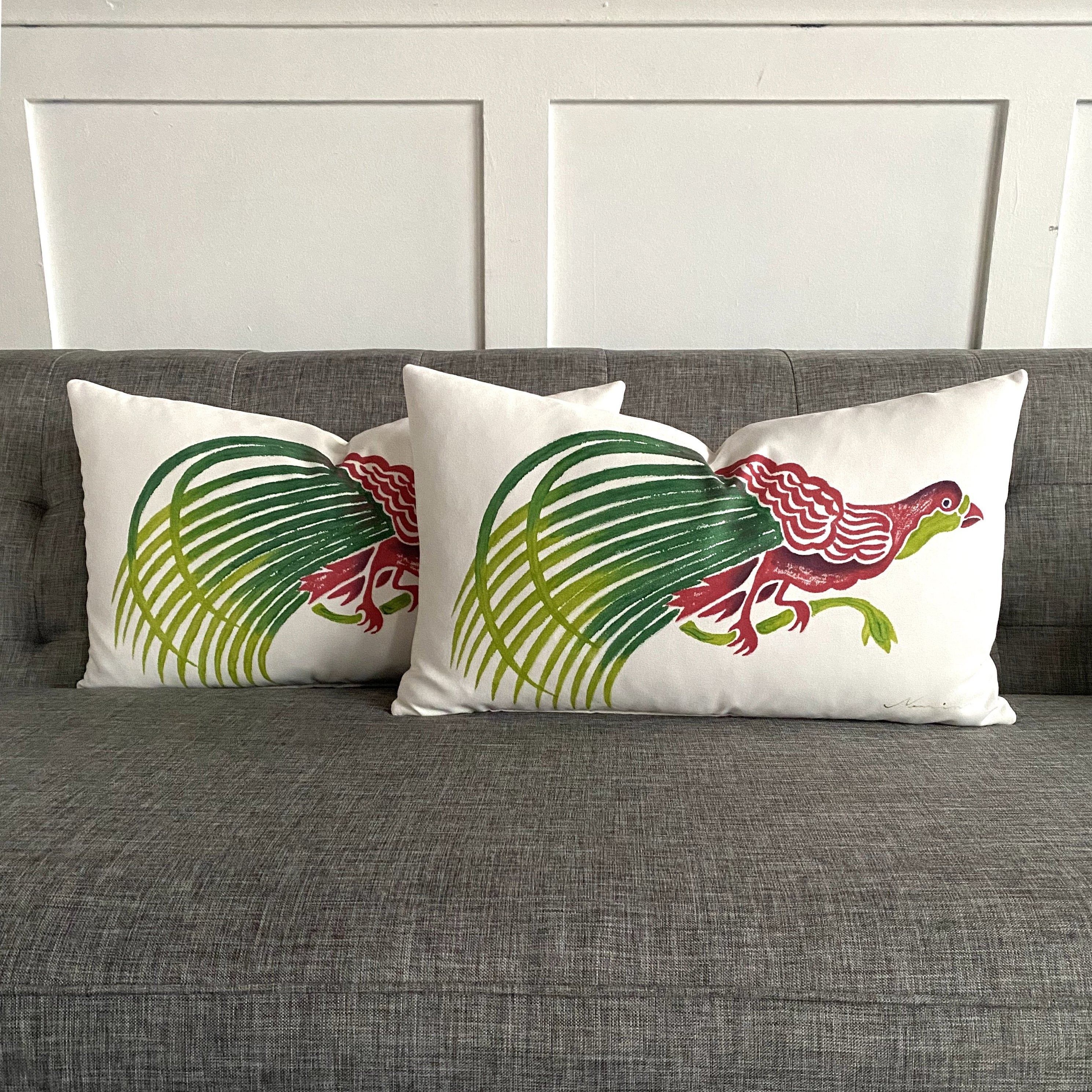 Playful Hand-Painted Peacock Lumbar Pillow Cover 13x22