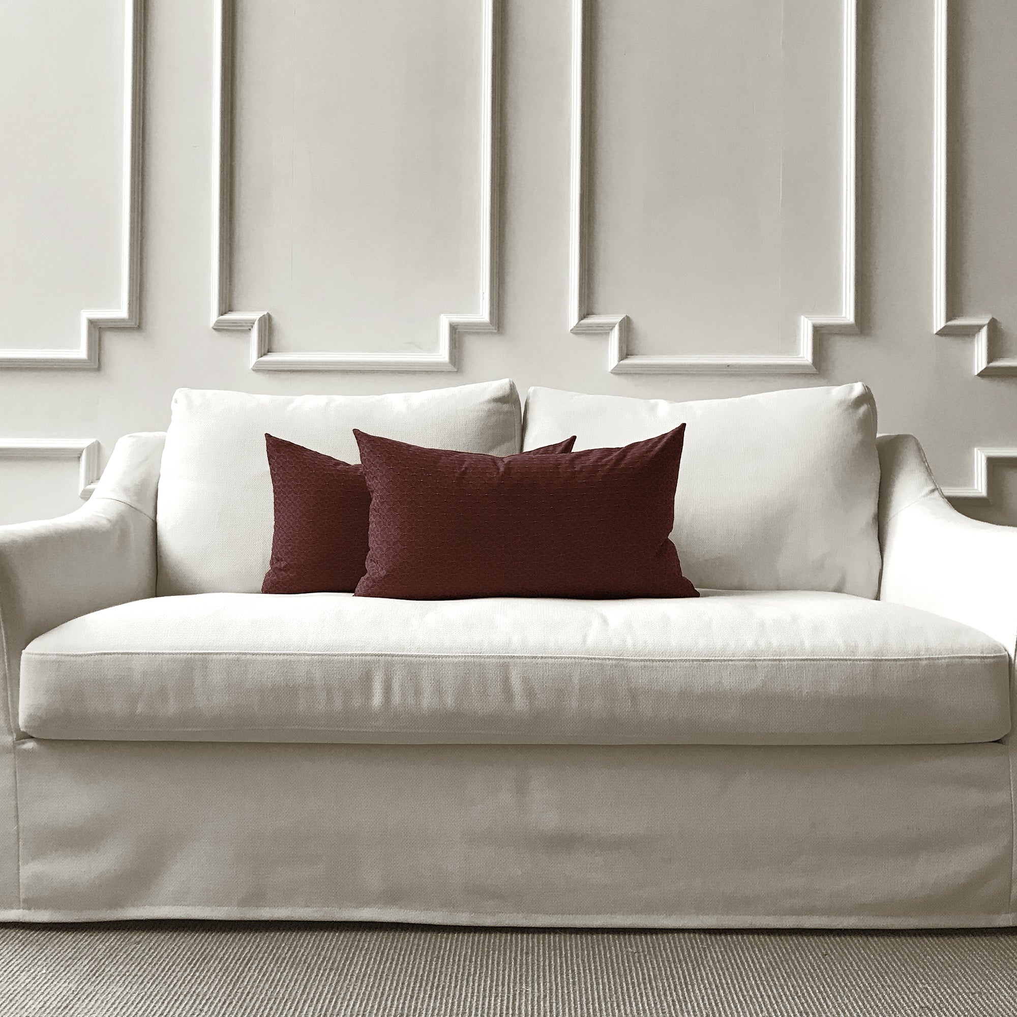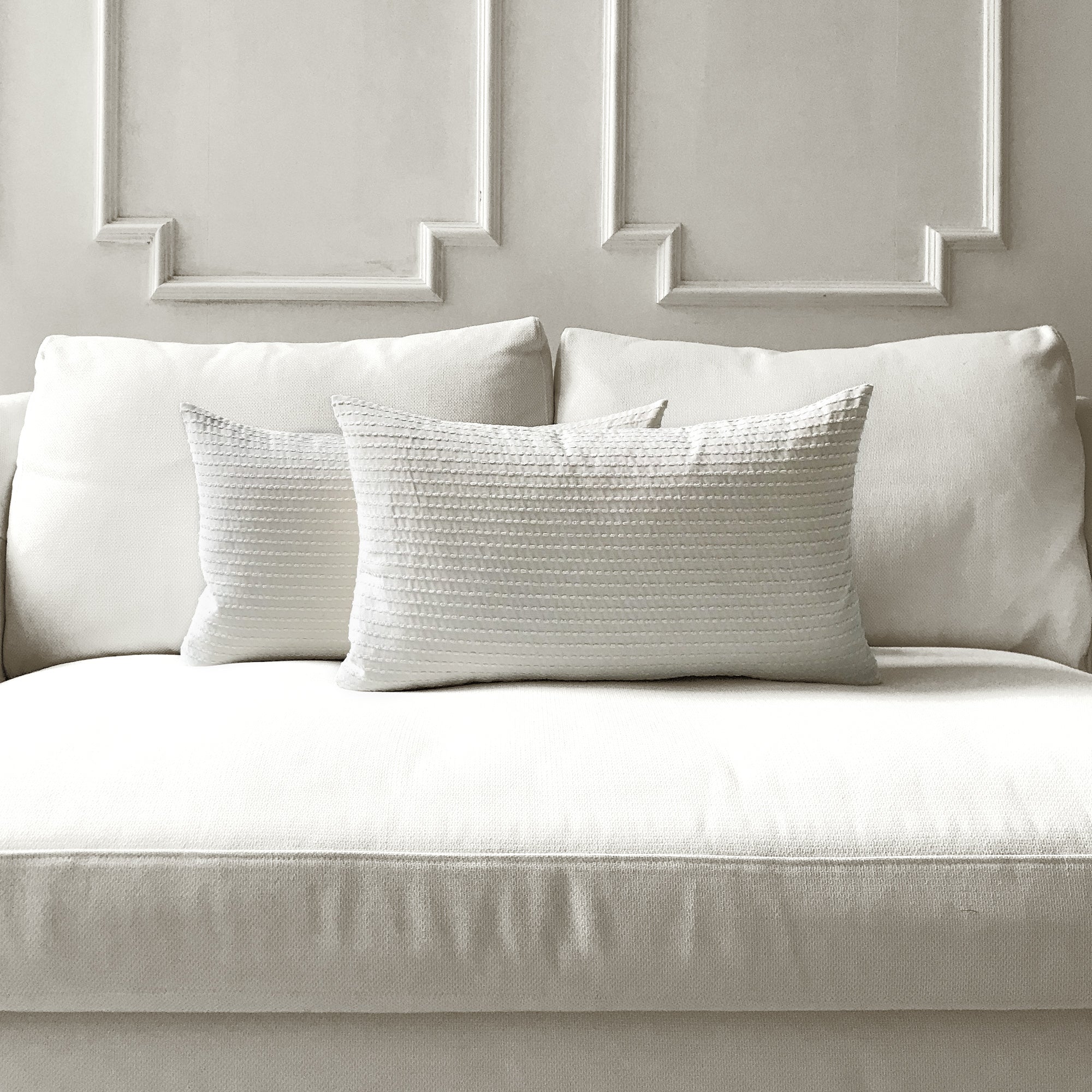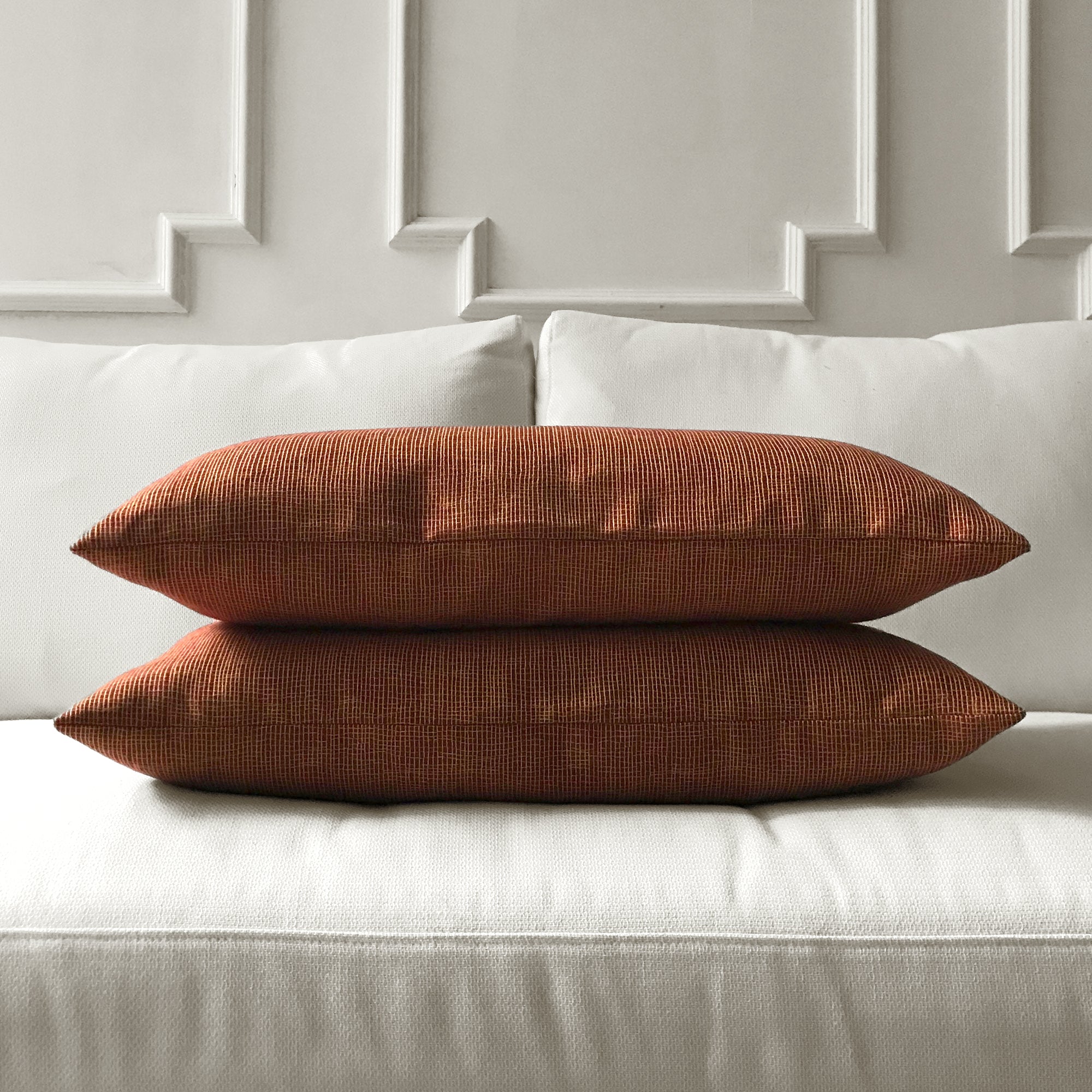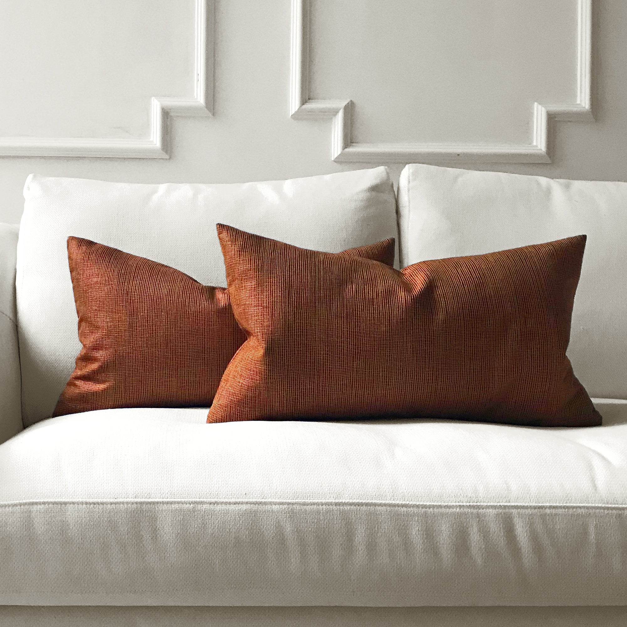 Covers are available in multiple sizes for layered styling: 16” x 16”, 18” x 18”, 20” x 20”, 22” x 22” and lumbar shapes 12” x 20” and 14” x 24”. The range of sizes gives you flexibility when styling on different furniture or mixing with existing pillows.