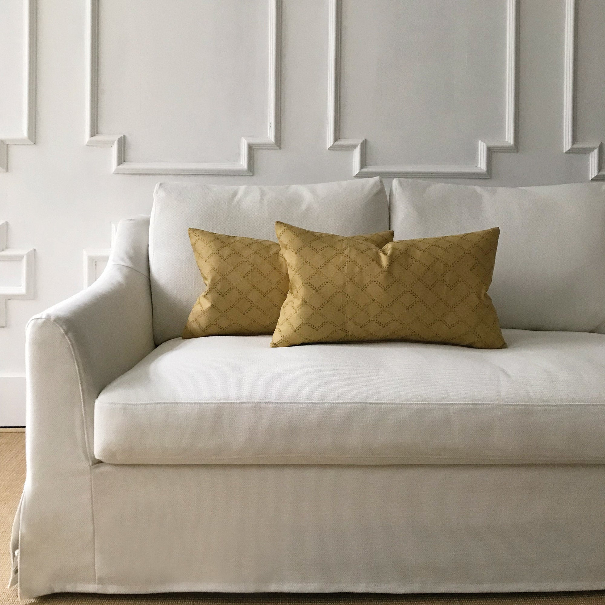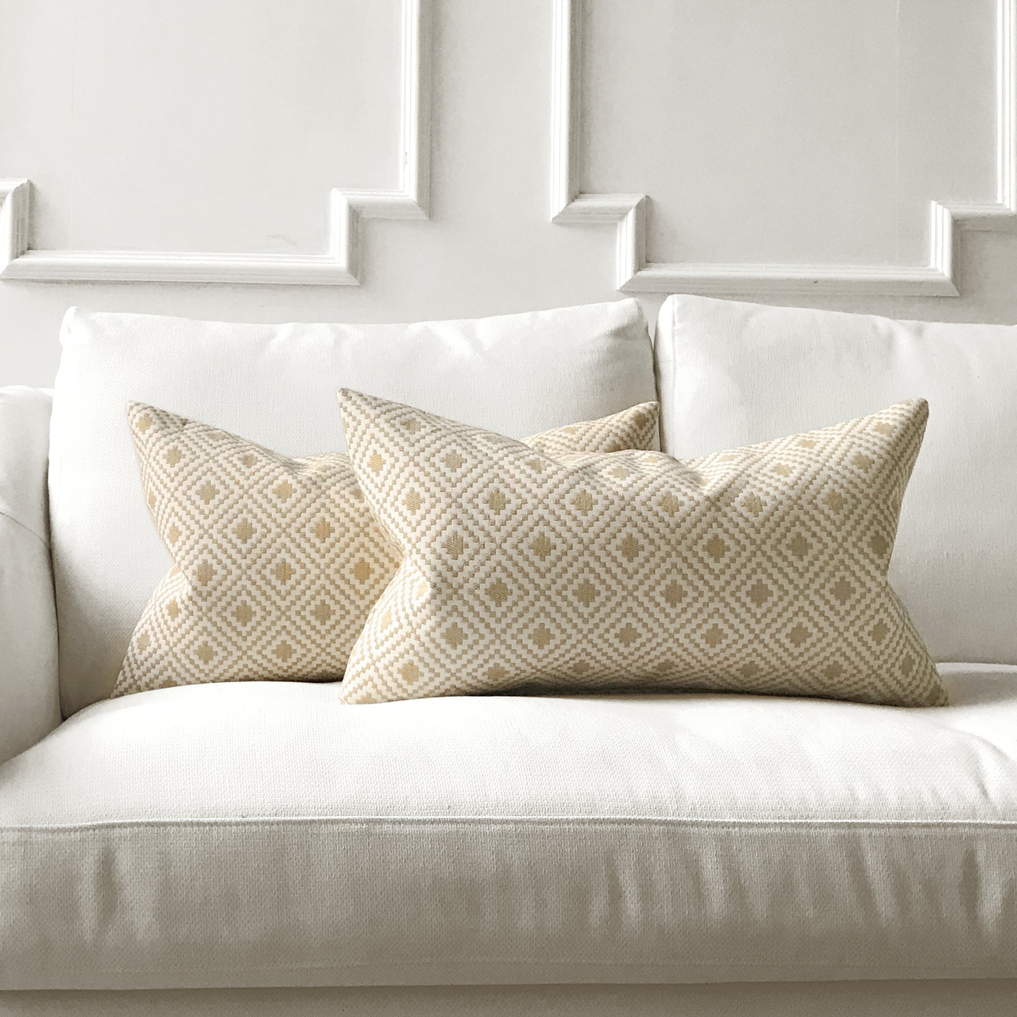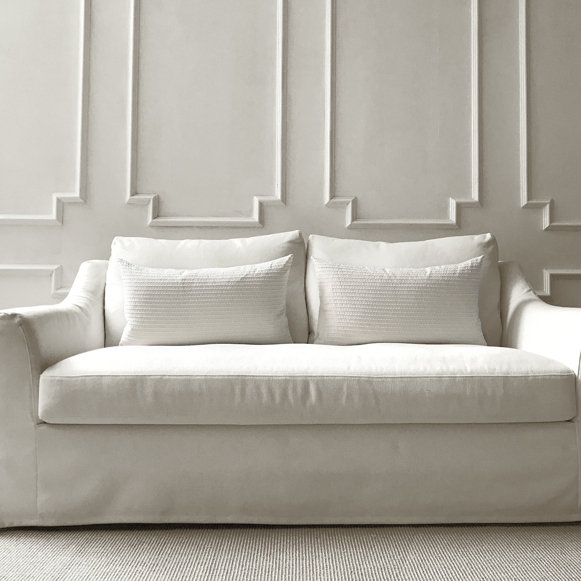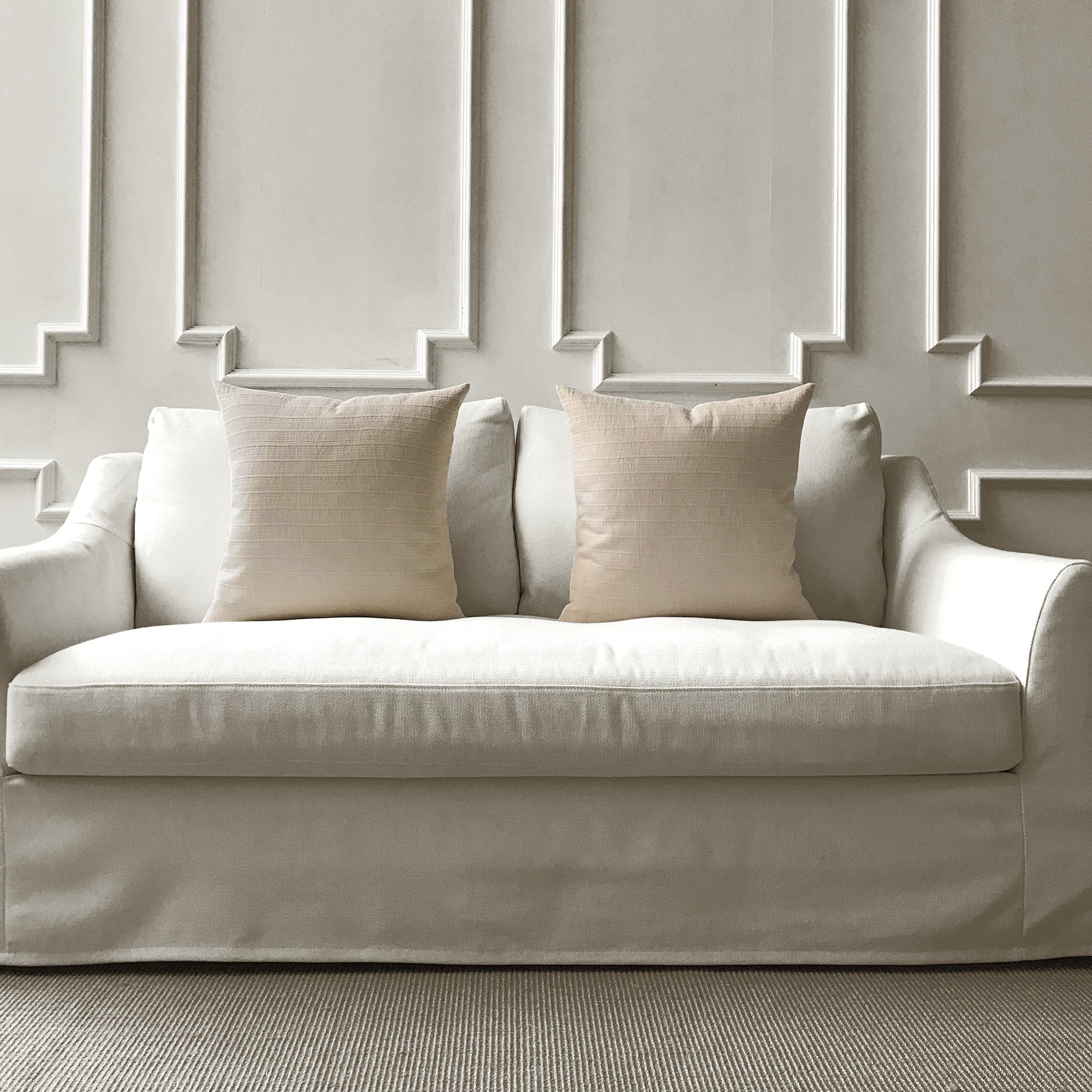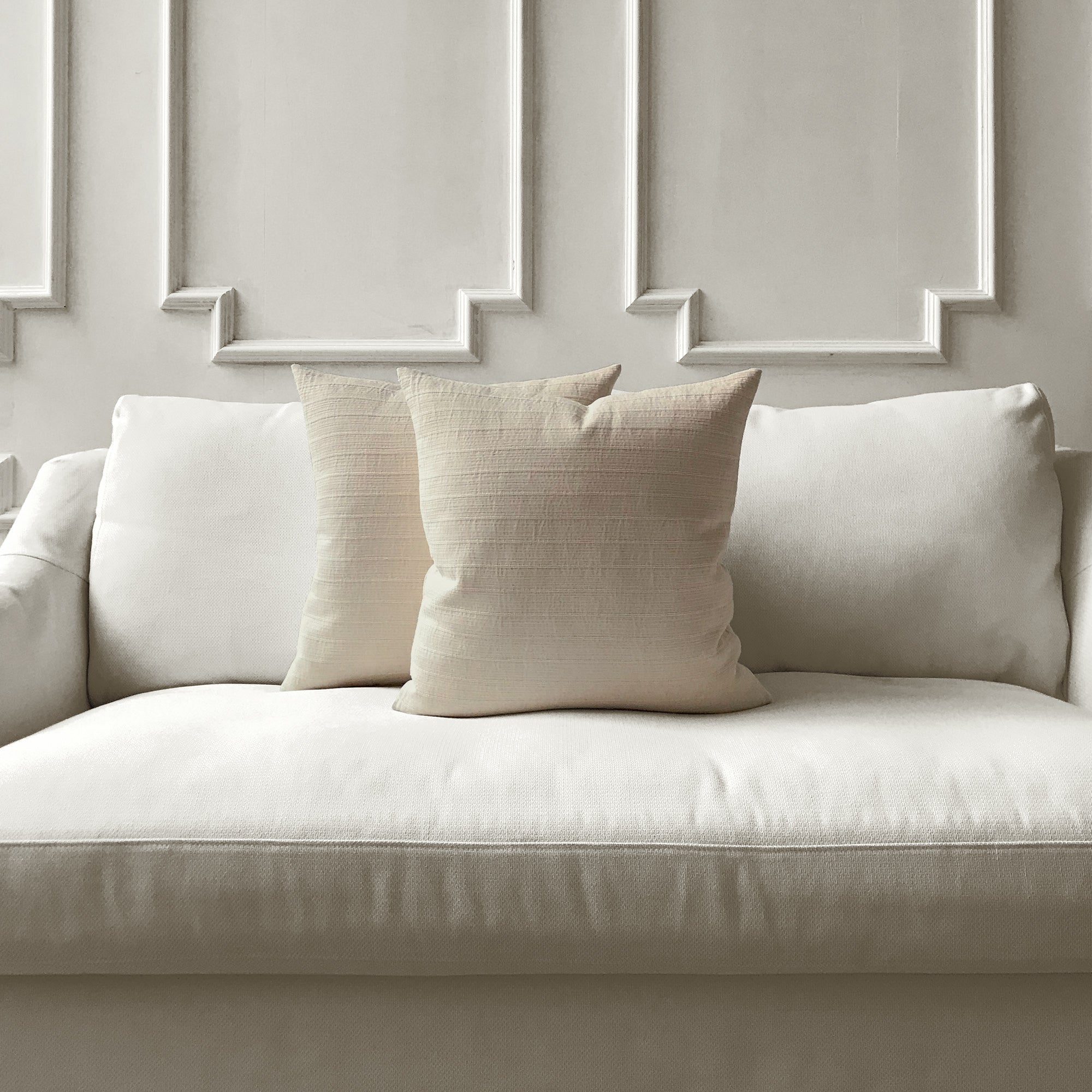 Covers are available in multiple sizes for layered styling: 16” x 16”, 18” x 18”, 20” x 20”, 22” x 22” and lumbar shapes 12” x 20” and 14” x 24”. The range of sizes gives you flexibility when styling on different furniture or mixing with existing pillows.