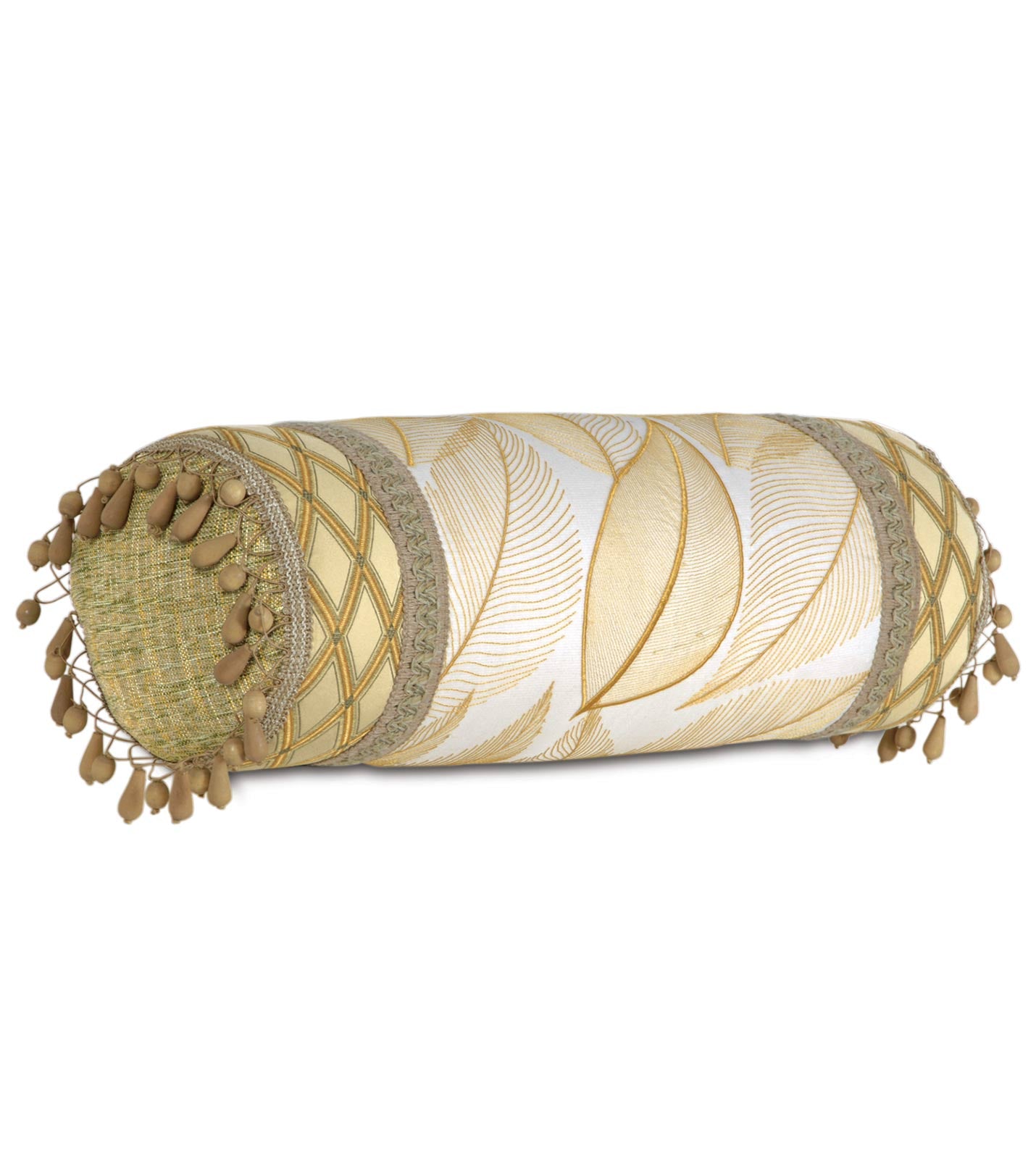 - Tropical bolster in 100% sheer silk fabric with gold leaf embroidery