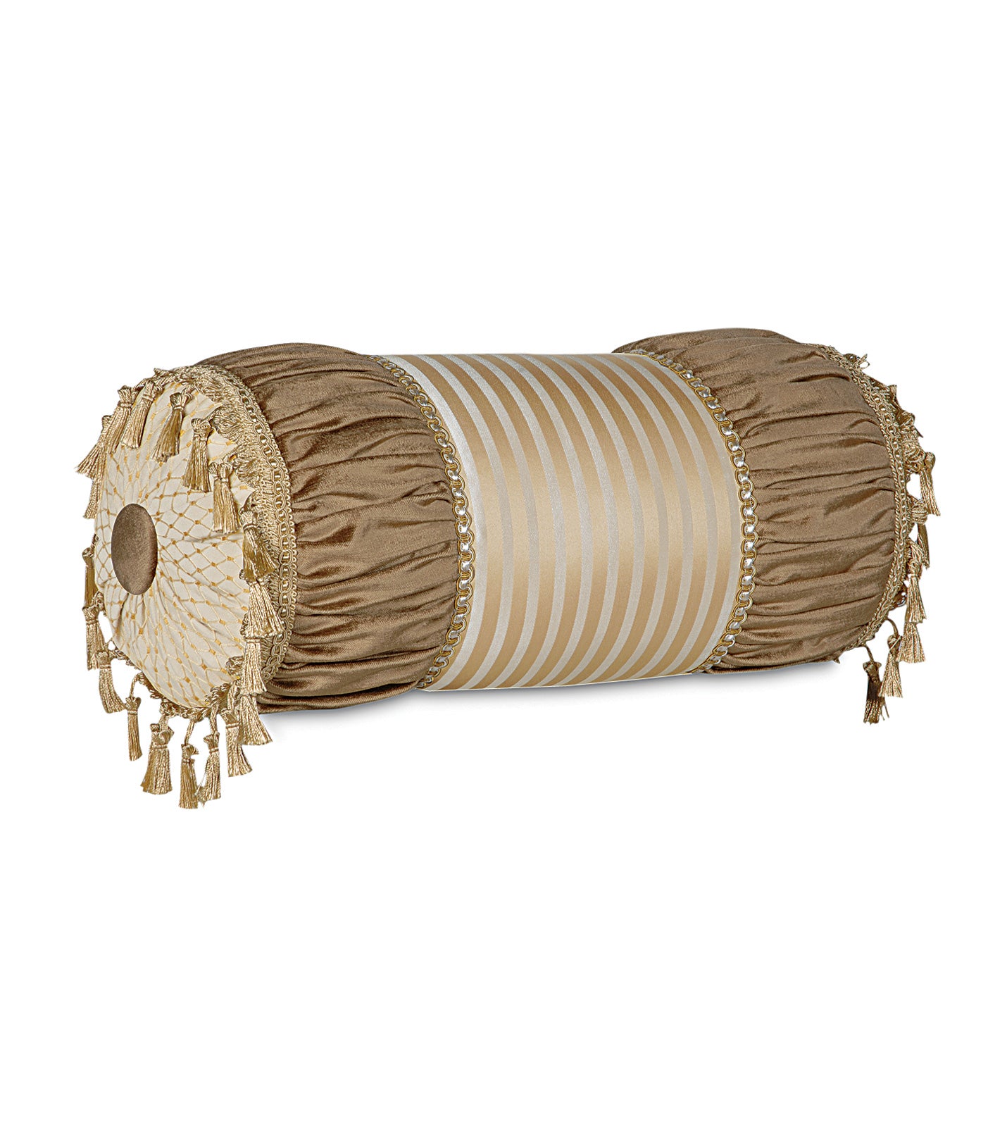 Chester Gold Ruched Bolster Pillow Cover 9Dx18