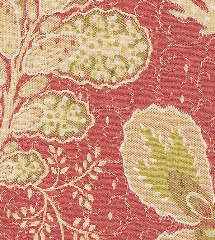 This luxurious botanical motif jacquard fabric in red and green meets flair with versatility, offering the perfect personal touch for any aesthetic. Designed and crafted by skilled textile artisans this fabric is made to last and never compromises on quality. All fabric is sold by the yard in 1-yard increments. Unfortunately, we do not accept returns on fabric orders but swatches are available.