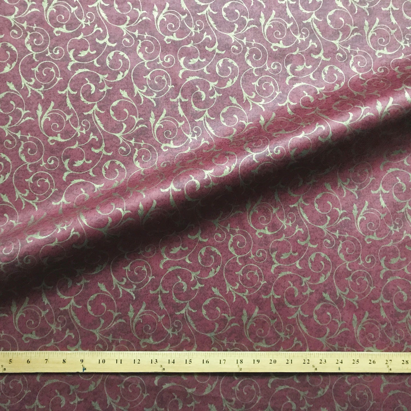 Maroon Traditional Botanical Scroll Cotton Fabric 54"