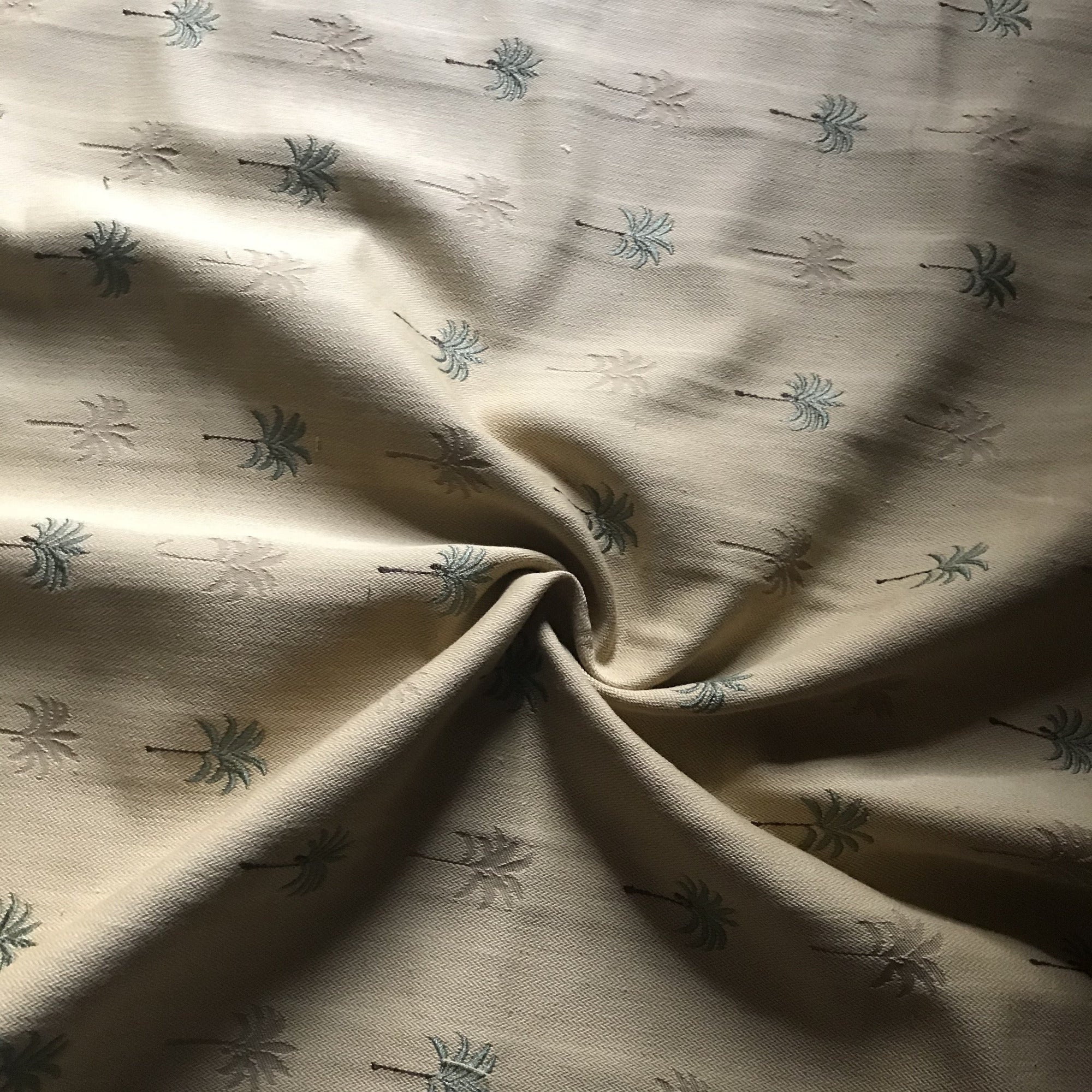 Enliven any interior with this Straw Palm Tree Embroidered Upholstery Fabric 54", perfect for all your upholstery needs. Give your bedding, chairs, cushions, windows and more a fresh new look with our selection of high quality fabrics curated by a team of forward thinking designers. Having limitless uses, this luxurious beige jacquard upholstery fabric meets flair with versatility, offering the perfect personal touch for any Traditional aesthetic. Designed to last, this fabric can provide the perfect look for your home. All fabric is sold by the yard in 1-yard increments. Unfortunately, we do not accept returns on fabric orders but samples are available by purchasing a $2 swatch.