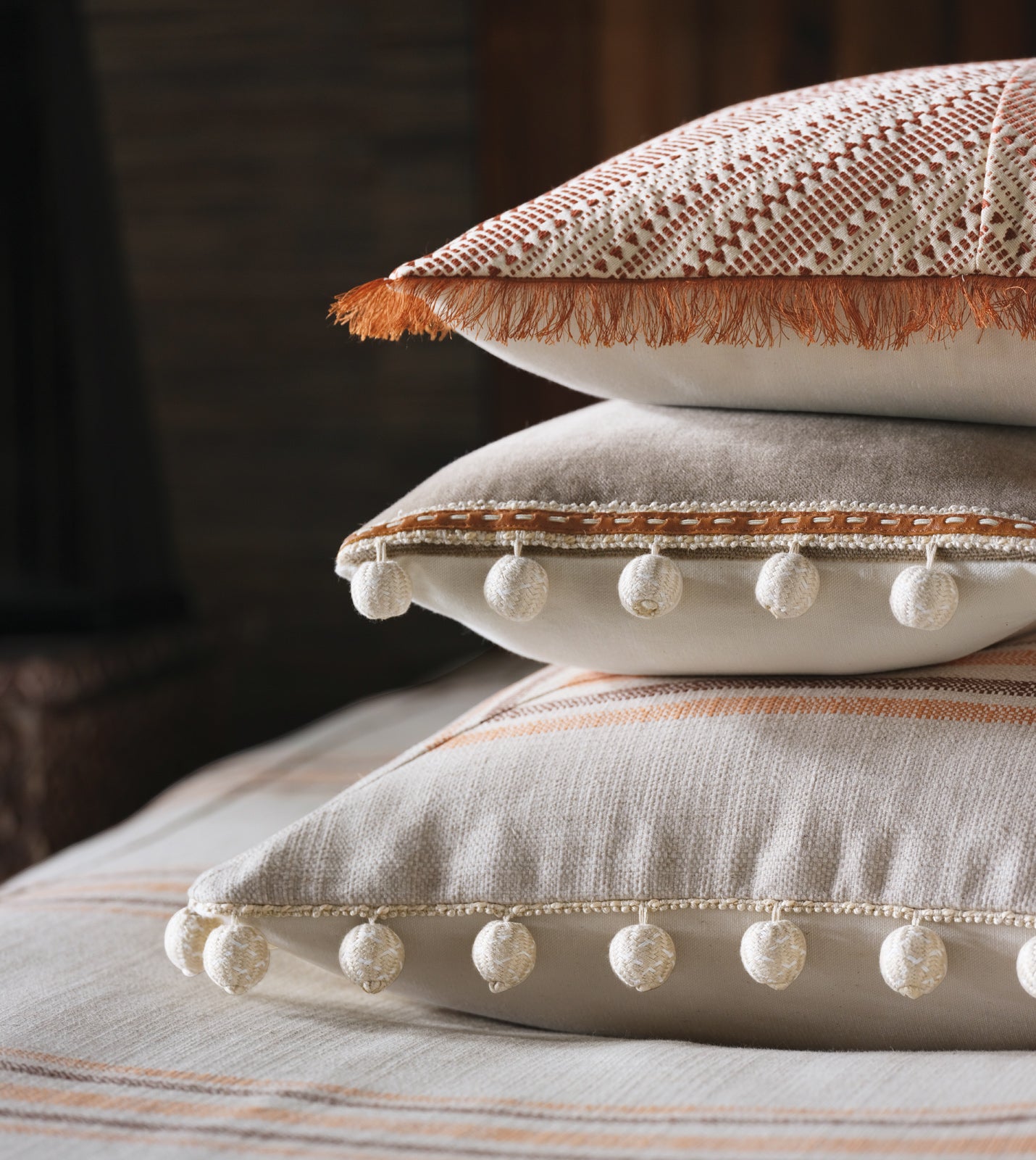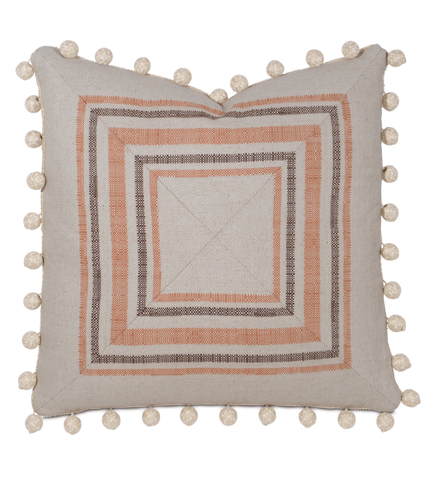 ⁌ Add warmth and texture to your home with the Canyon Clay Beaded Throw Pillow Cover. This 22x22 decorative pillow cover features a neutral mitered design in earthy tones, perfectly accented with a beaded trim edge for added detail. The natural beige fabric on the back provides balance, while the hidden zipper ensures easy care. Crafted in the USA, this piece blends artisanal charm with everyday functionality.