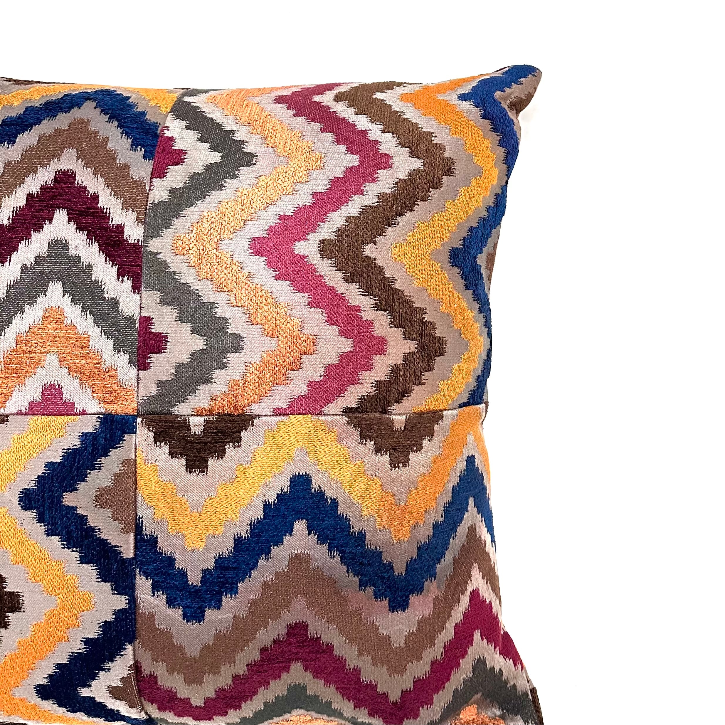 ⁌ Add energy and texture to your décor with this 20x20 multicolor jacquard throw pillow cover, featuring a dynamic chevron pattern. The richly woven design showcases an array of vibrant tones, making it a lively accent for eclectic, bohemian, or contemporary interiors. Handcrafted with care, this pillow cover offers both visual interest and everyday comfort.