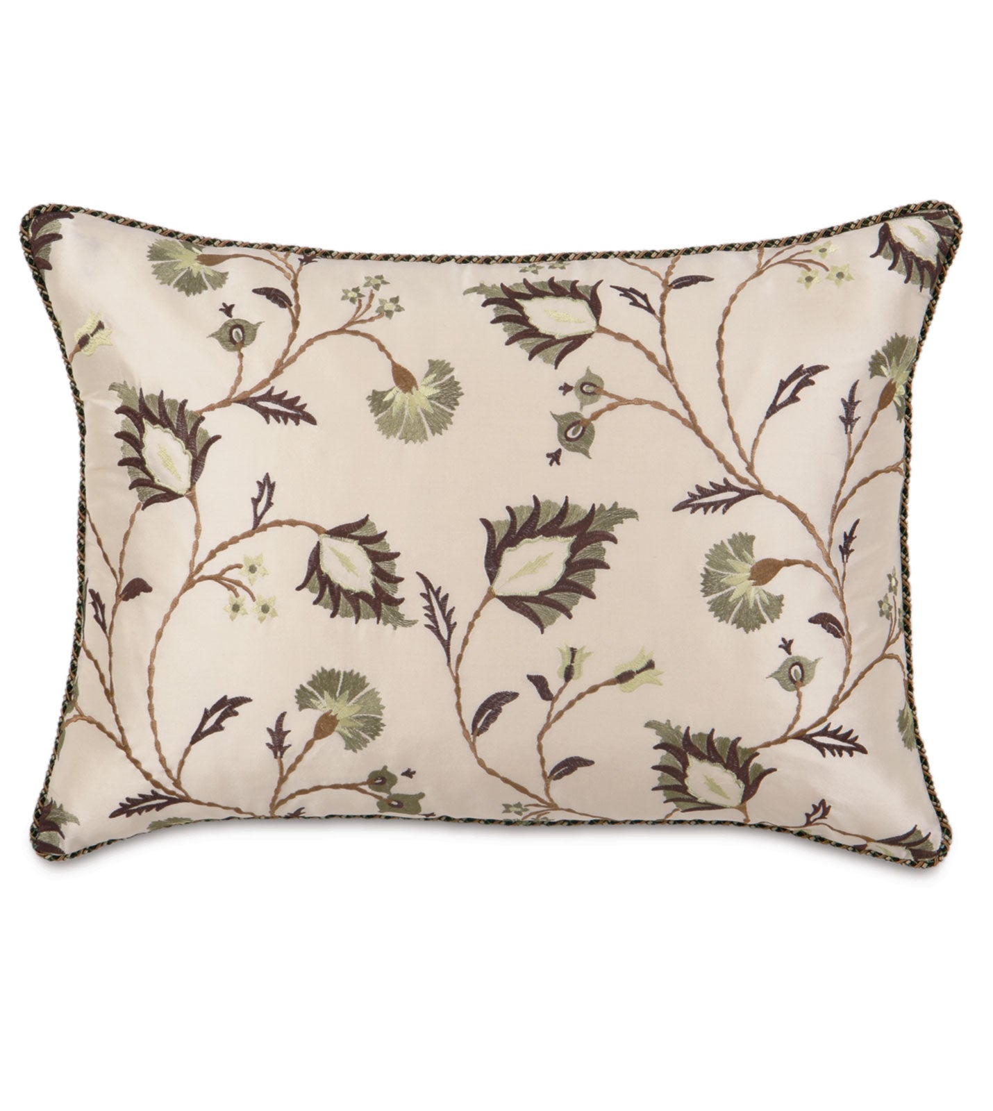 Sage 100% Silk Floral Lumbar Pillow Cover 16x22