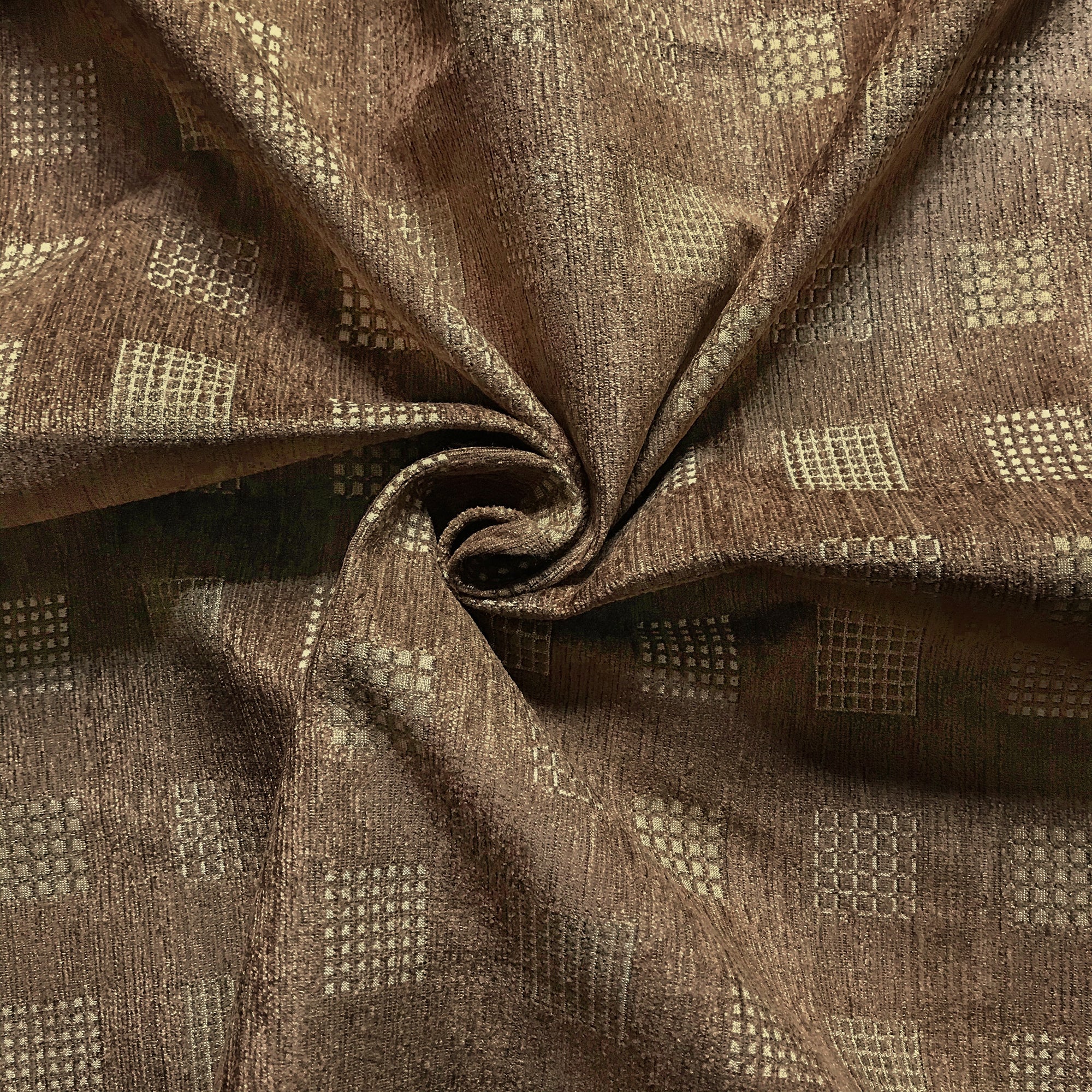 Bronze Glam Lodge Woven Grids Chenille Upholstery Fabric 54"