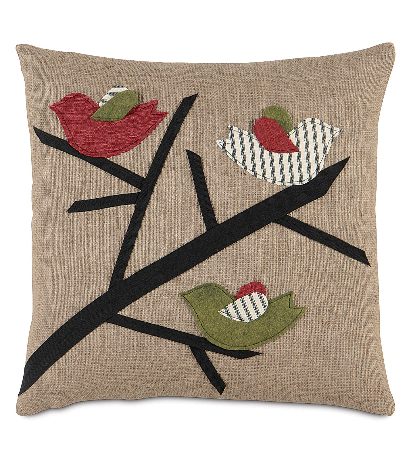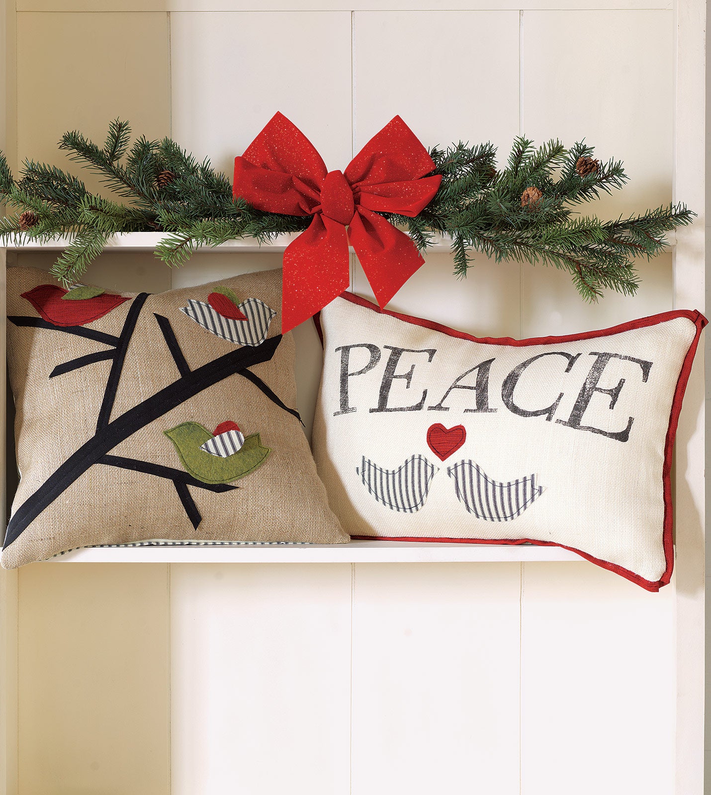 We love the little things in life. Like festive throw pillows for the holidays! So we just couldn't resist pairing the log cabin warmth of burlap, felt, and velvet with the festive 3 calling birds design.