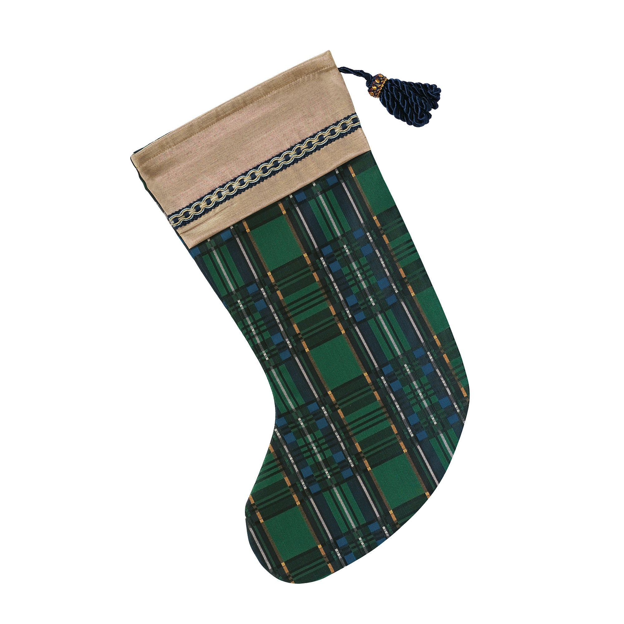 - Green, blue and gold plaid pattern stocking