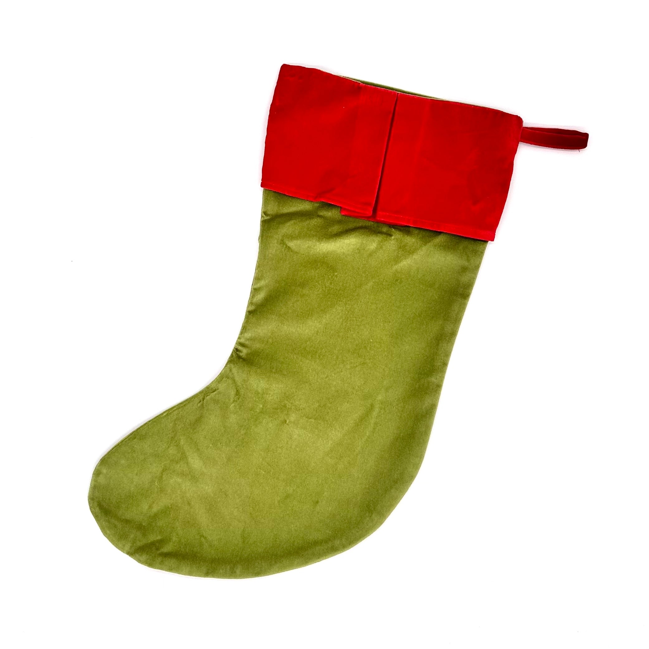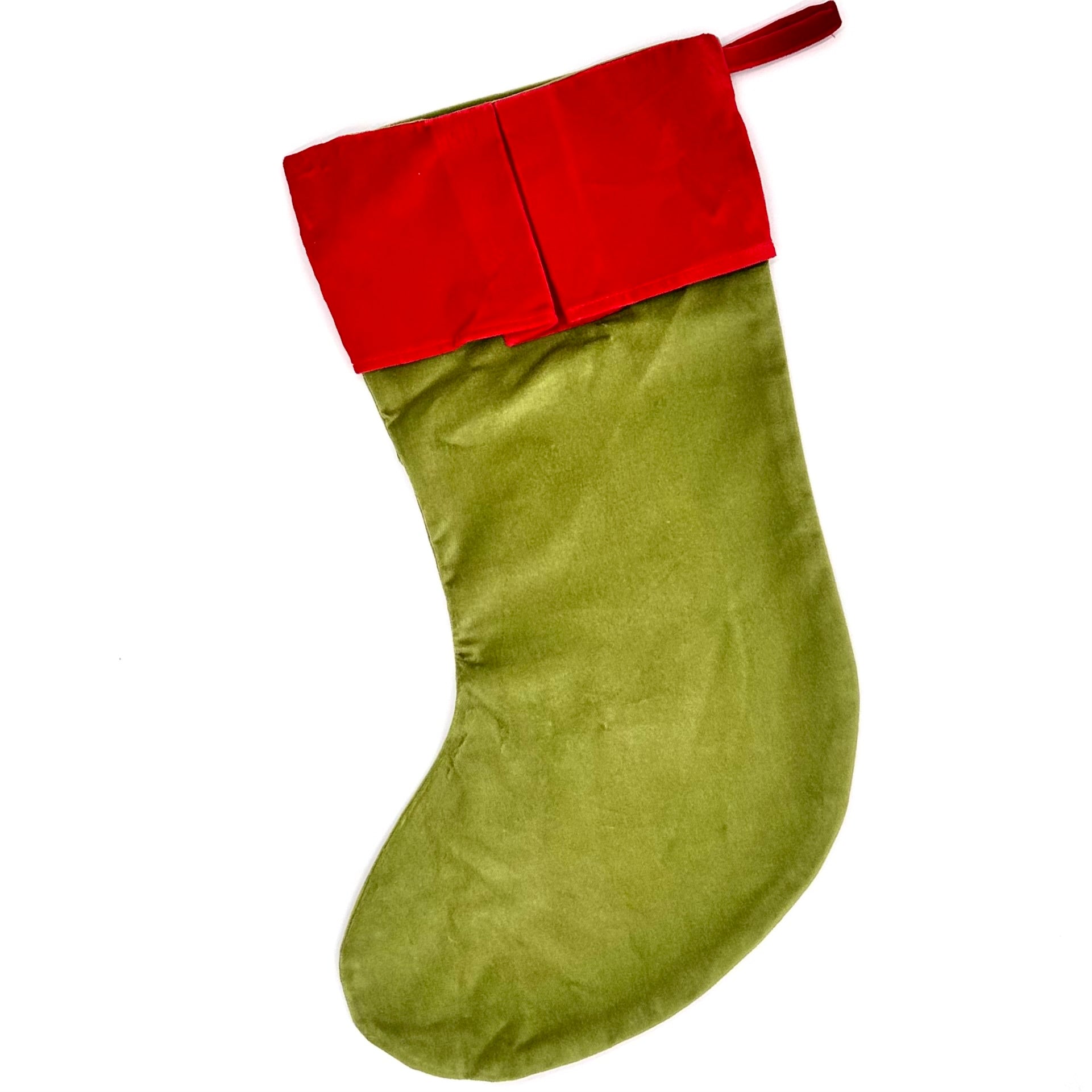 ⁌ Add a timeless holiday touch to your mantel with this traditional green and red velvet Christmas stocking, thoughtfully crafted to bring warmth, charm, and a festive spirit to your home. Measuring 20"x12", this stocking features rich green velvet as the primary fabric, accented with subtle touches of deep red velvet for a classic, holiday-ready look.