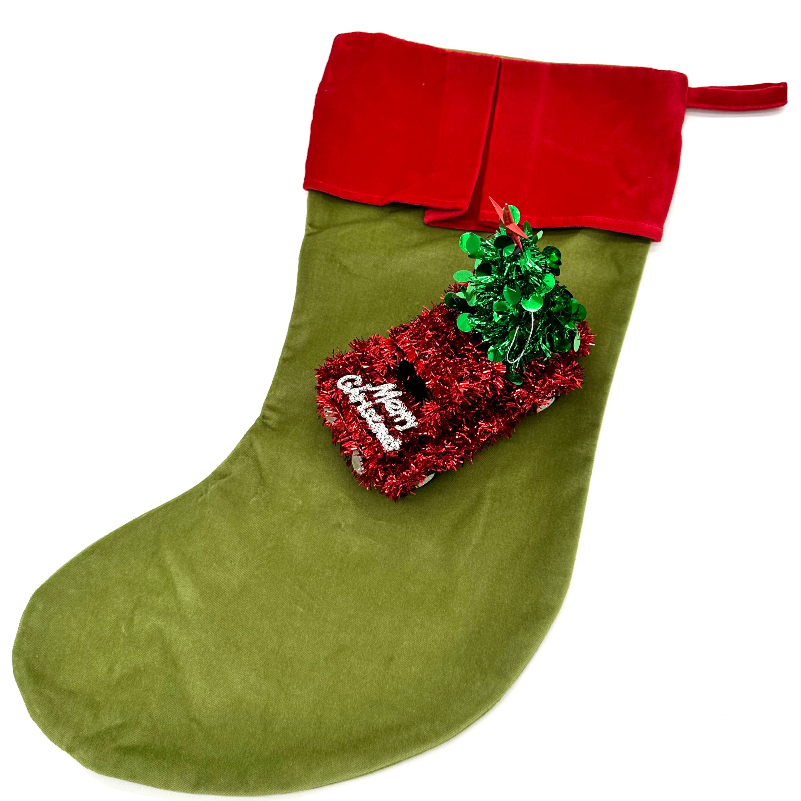 Traditional Green and Red Velvet Christmas Stocking 20"x12"