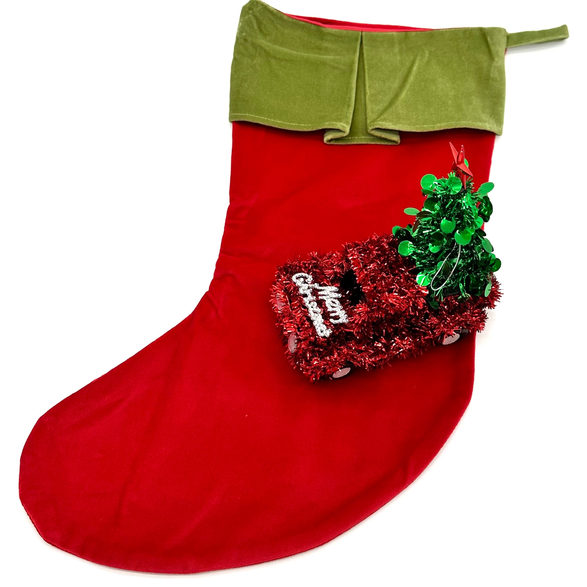 Traditional Red and Green Velvet Christmas Stocking 20"x12"