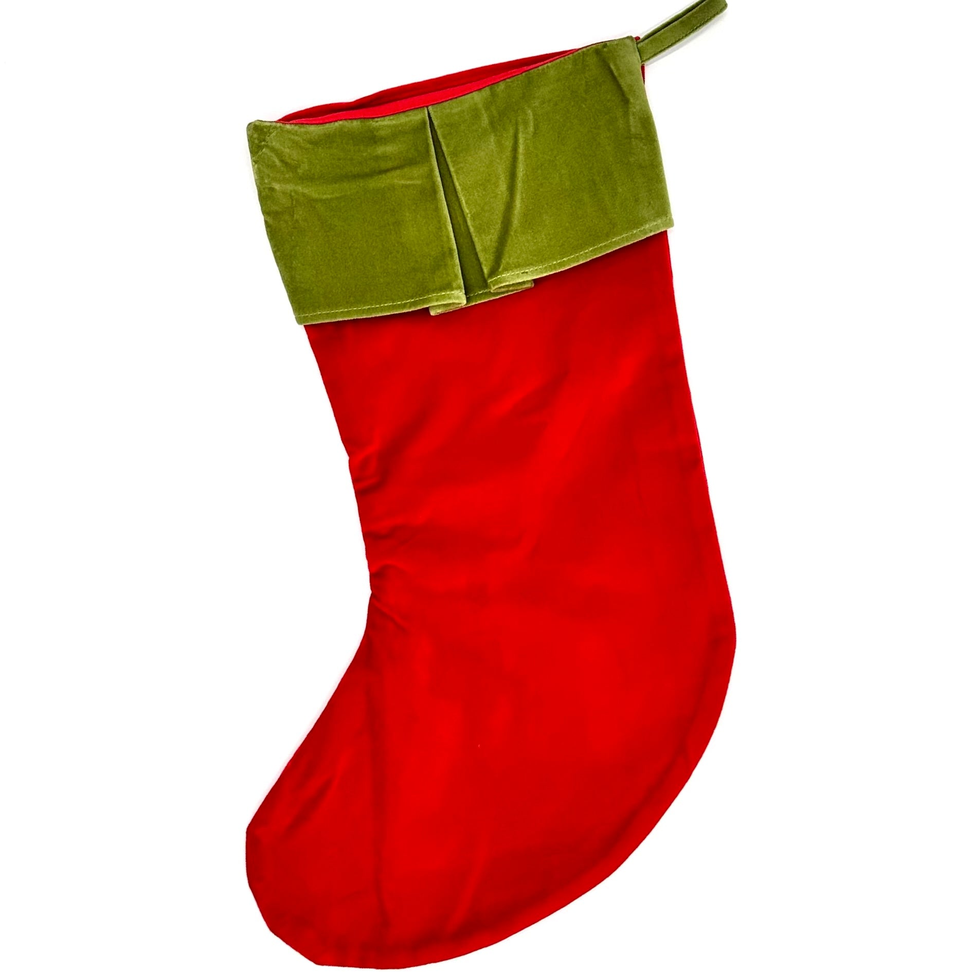 ⁌ Bring timeless holiday charm to your home with this traditional red and green velvet Christmas stocking, beautifully crafted to add warmth and elegance to your mantel. Measuring 20"x12", this stocking features rich red velvet accented with subtle green velvet details—creating a festive, heirloom-quality look that suits any holiday décor style.