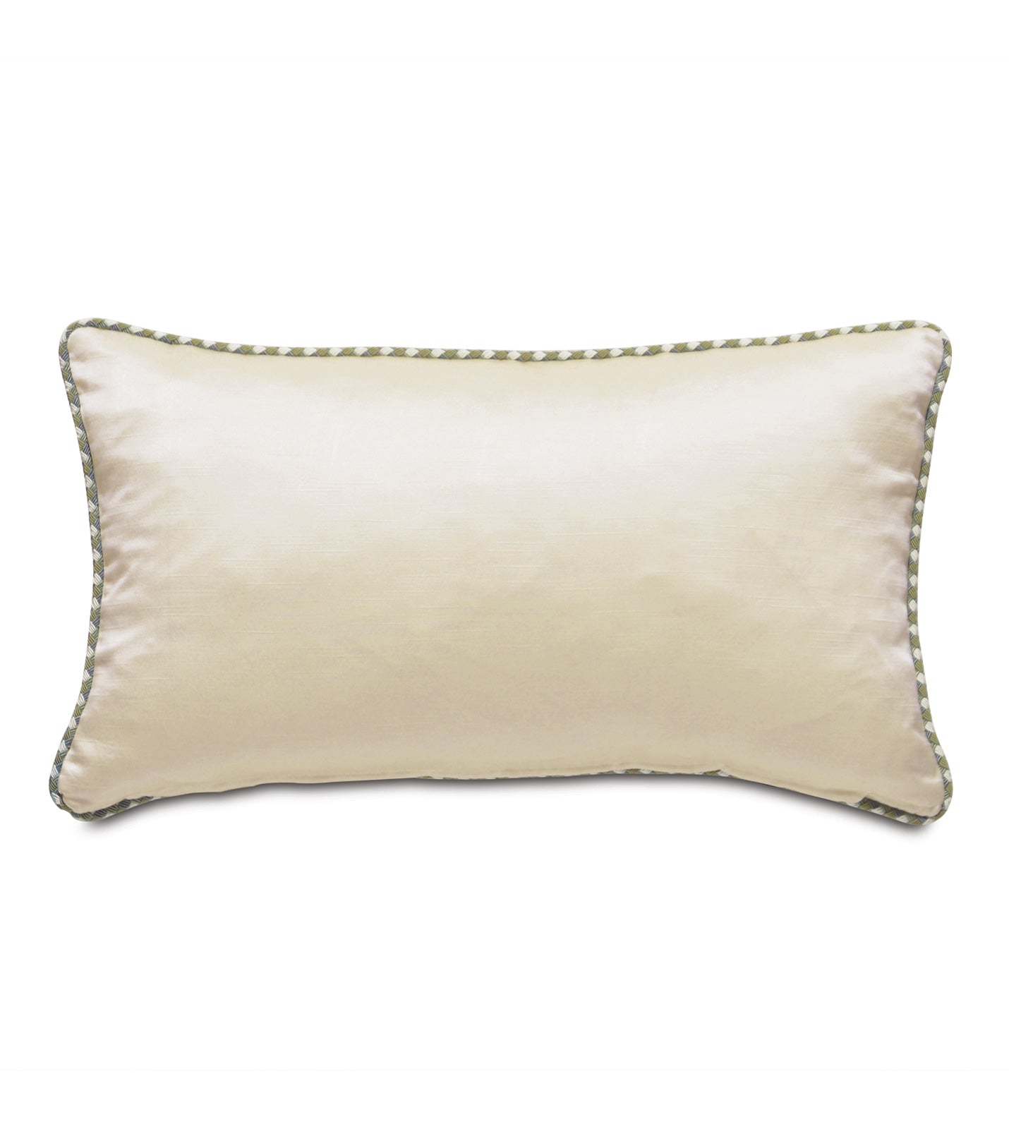 • Decorative pillow in satin finish fabric with hand-painted floral in cream