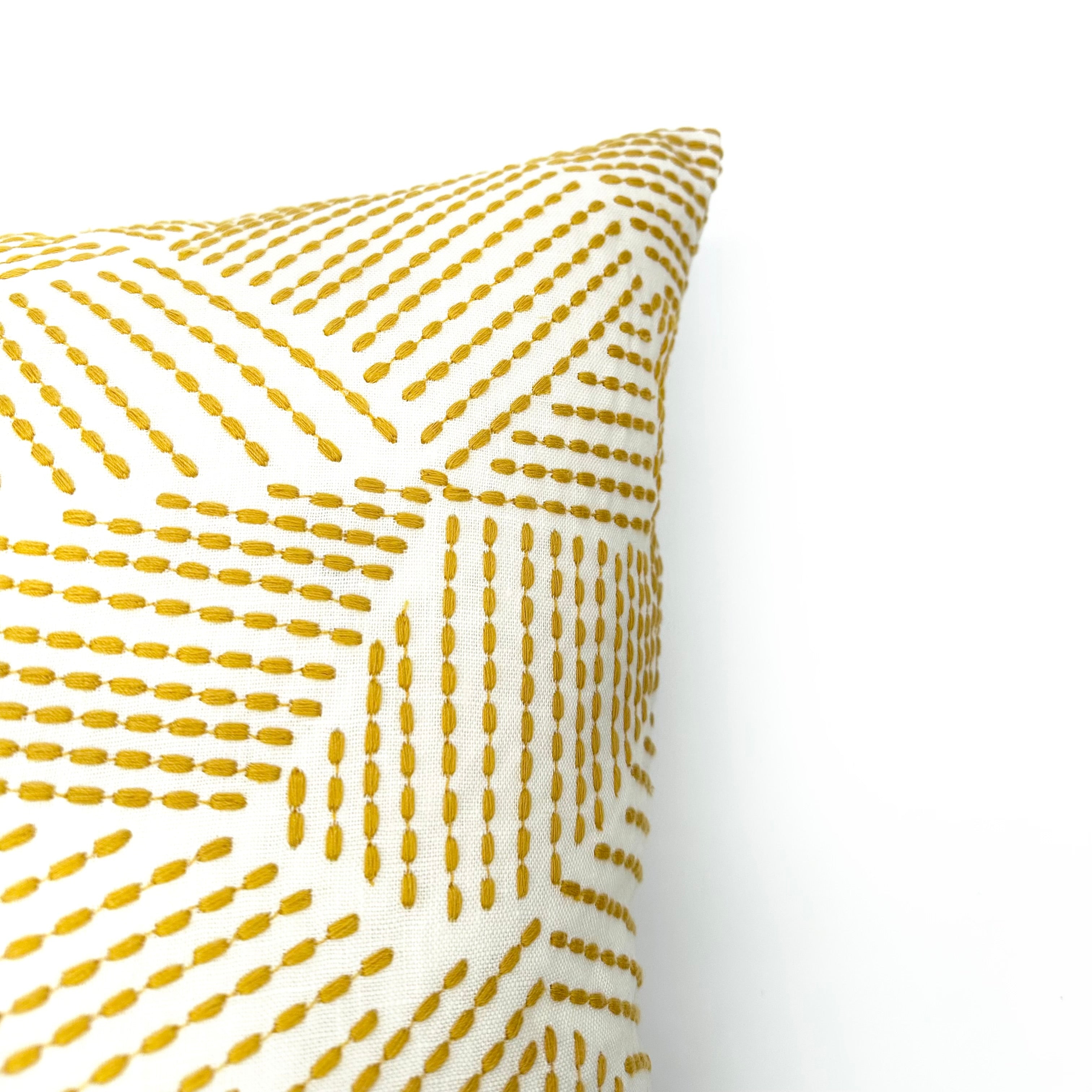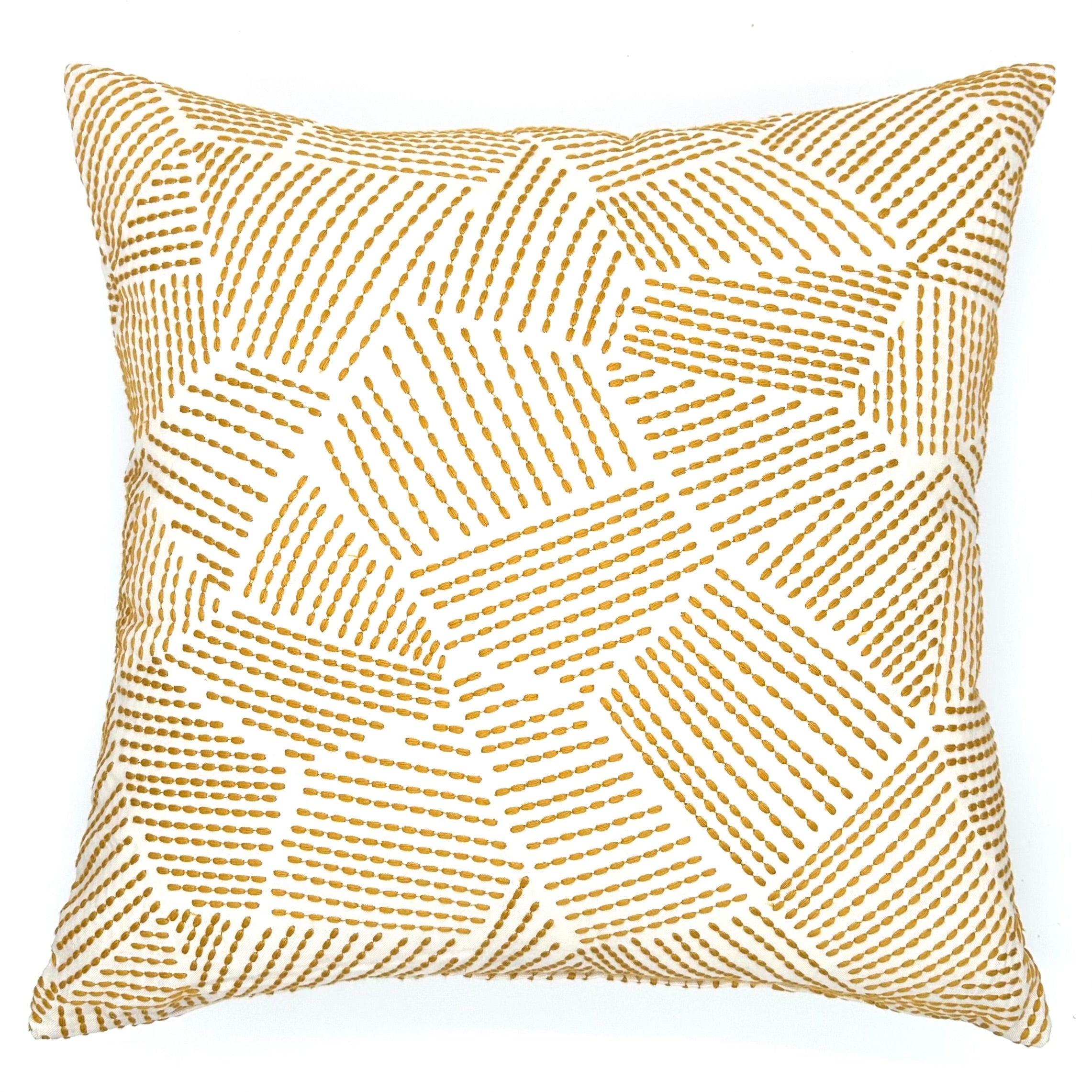 - Embroidered decorative pillow cover with a delicate pinstripe design in soft champagne tones