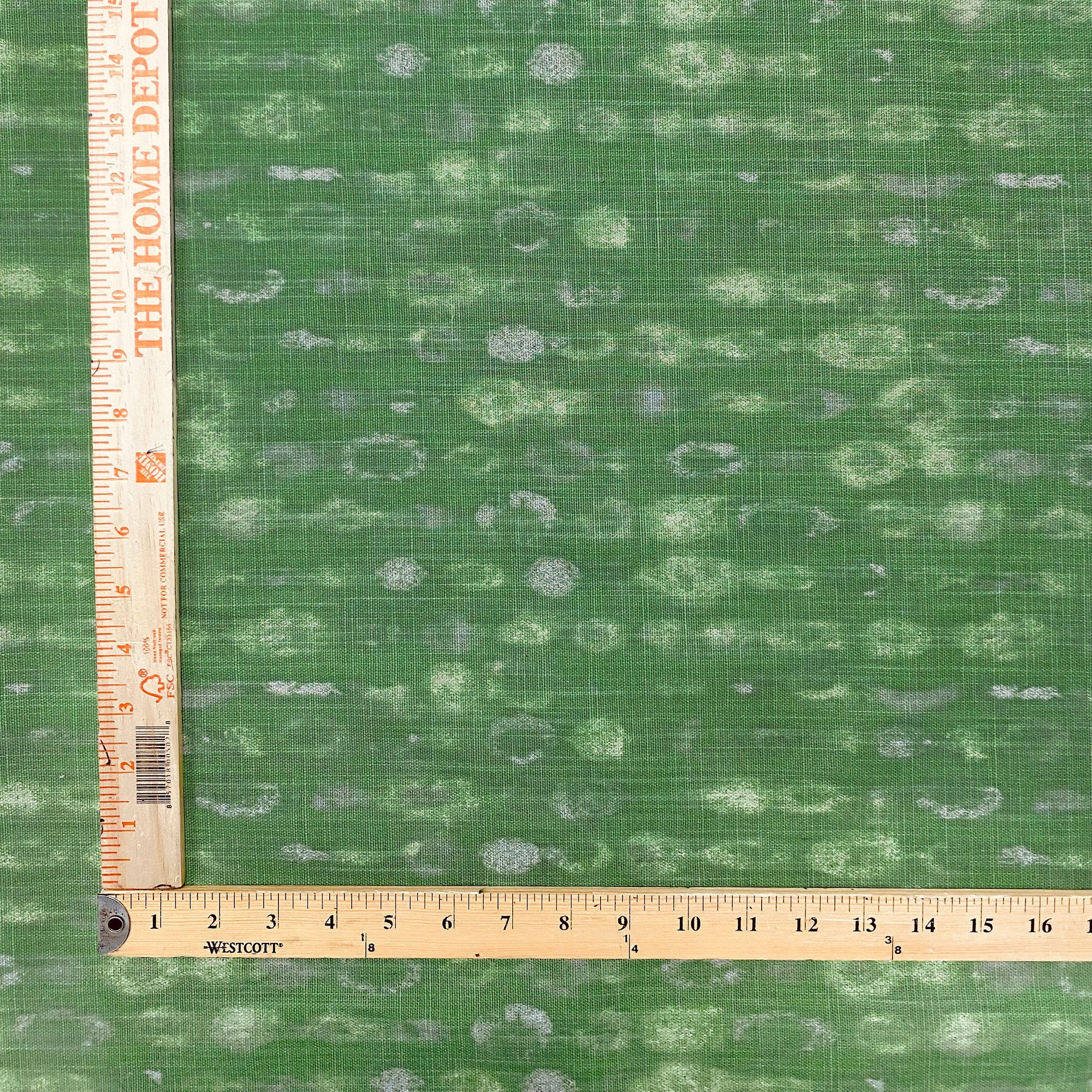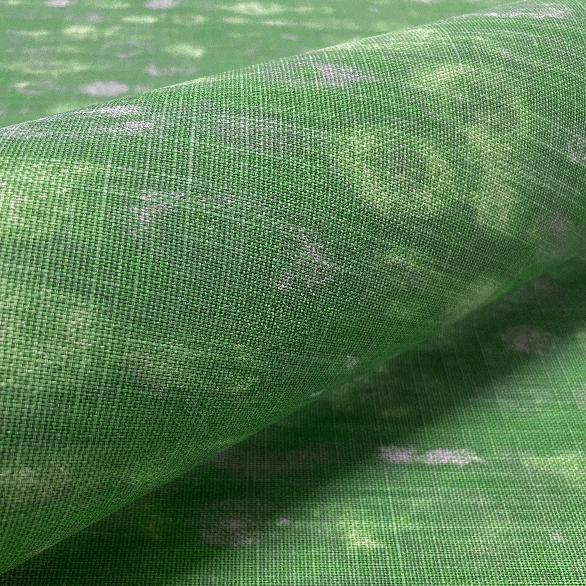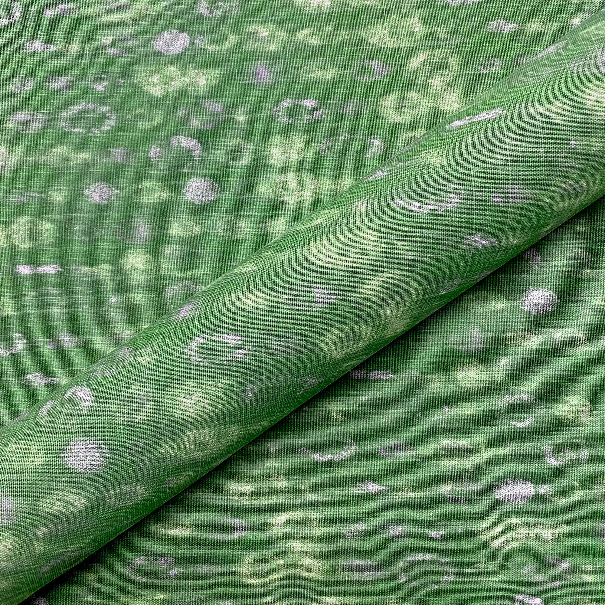 Lightweight cotton fabric with linen appearance - features printed pattern in emerald green.