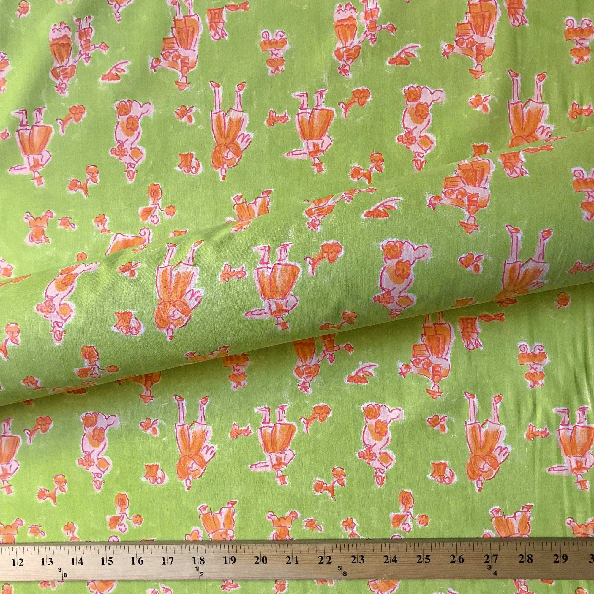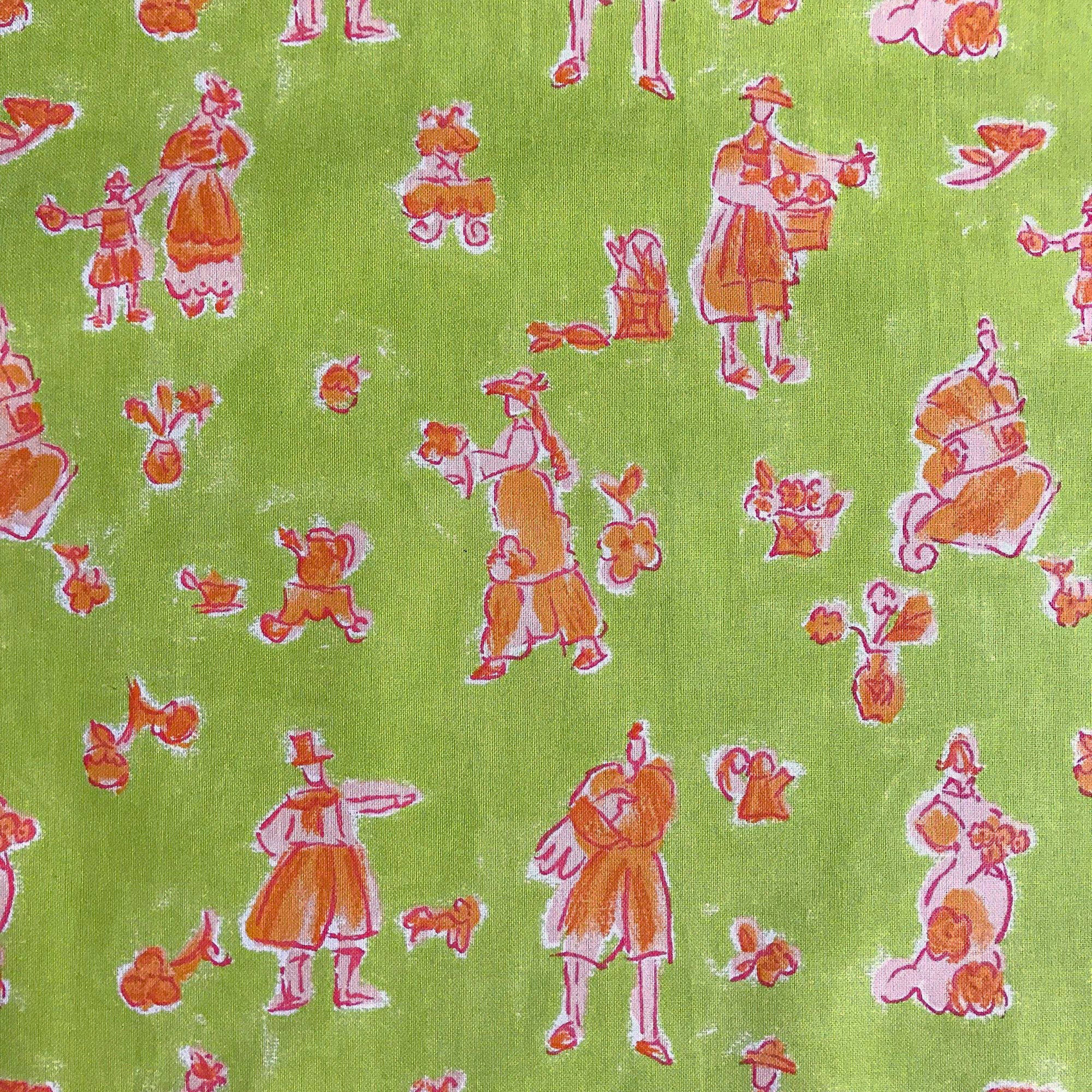 Lulu Lime Kids Toile Cotton Print Upholstery Fabric 54"