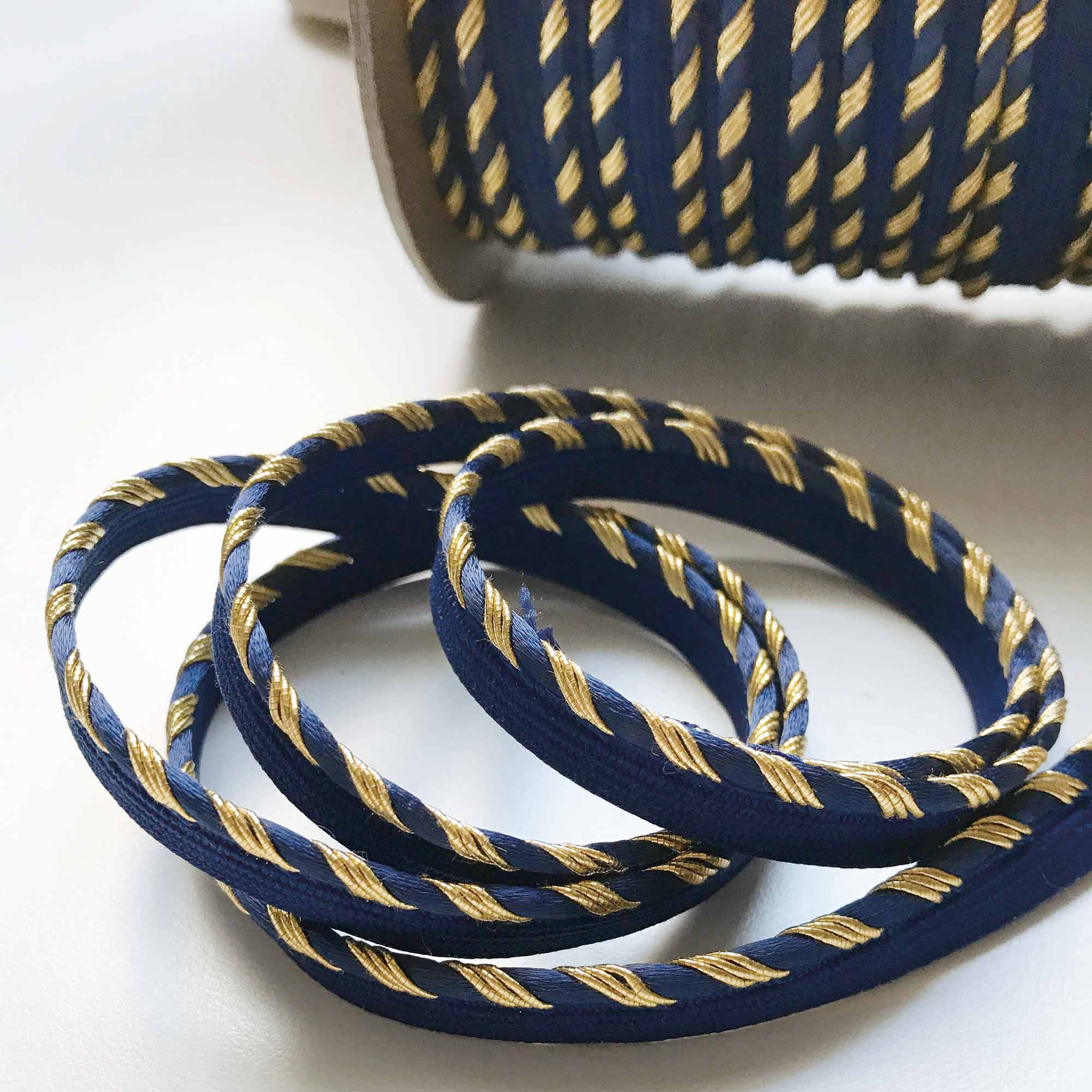 Gold and Indigo High Quality Decorative Lip Cord Trim by the yard