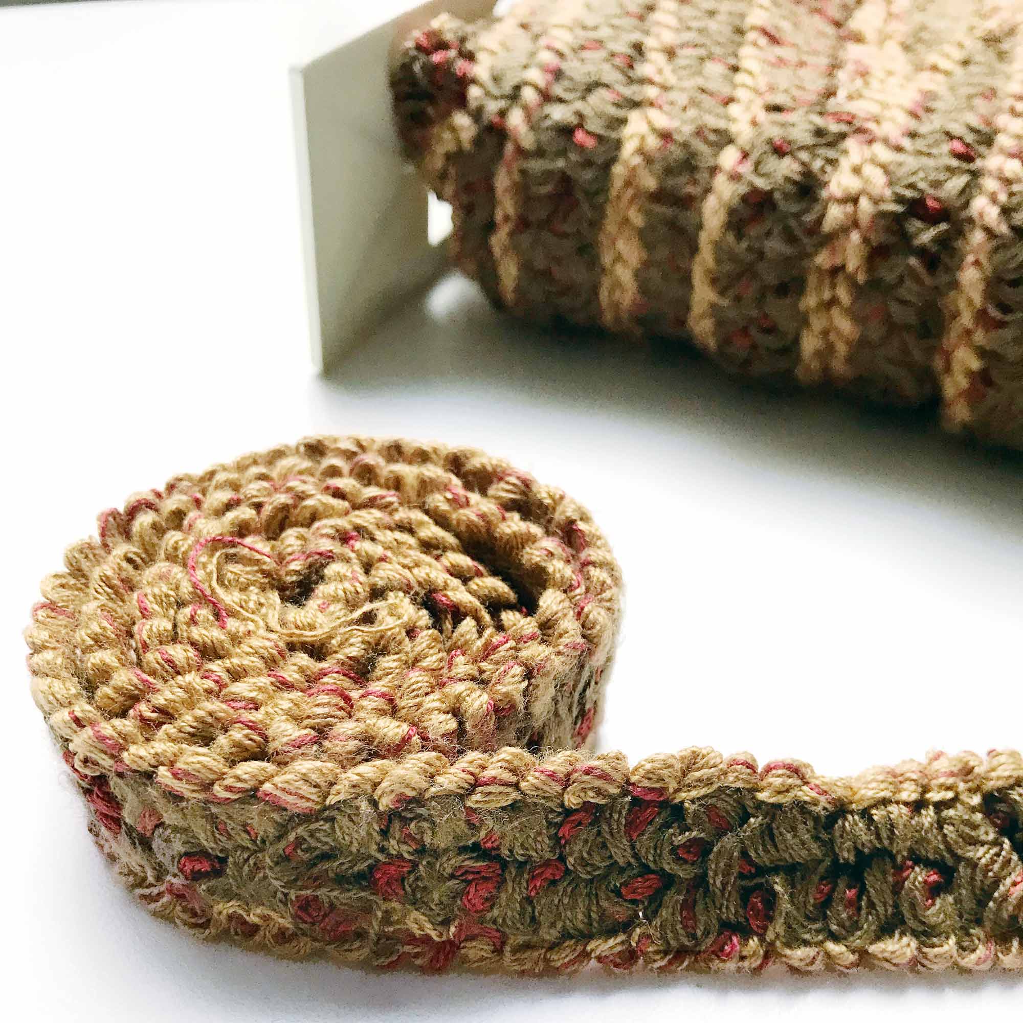 • Braided trims are textured and a bit raised, great for decorative edging.