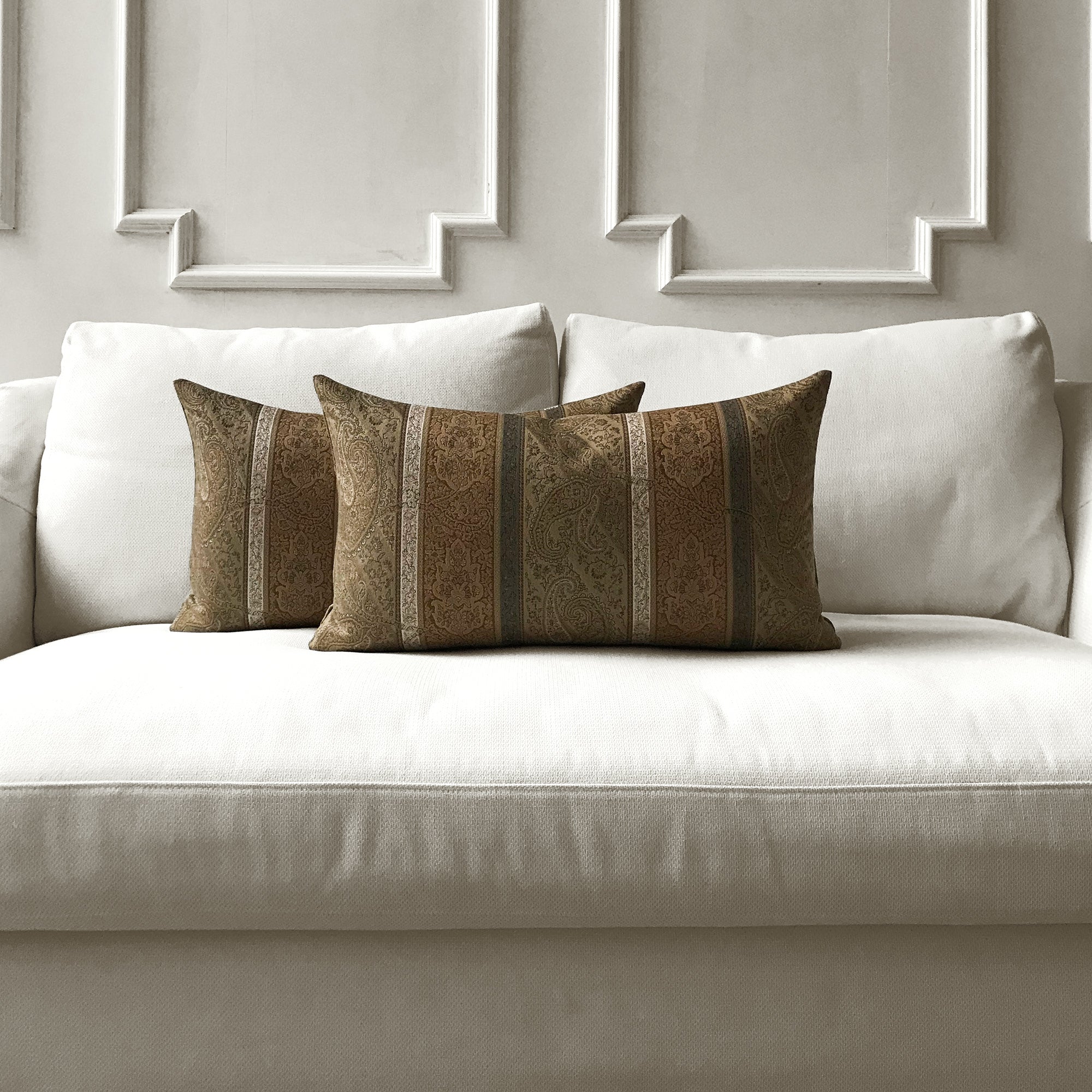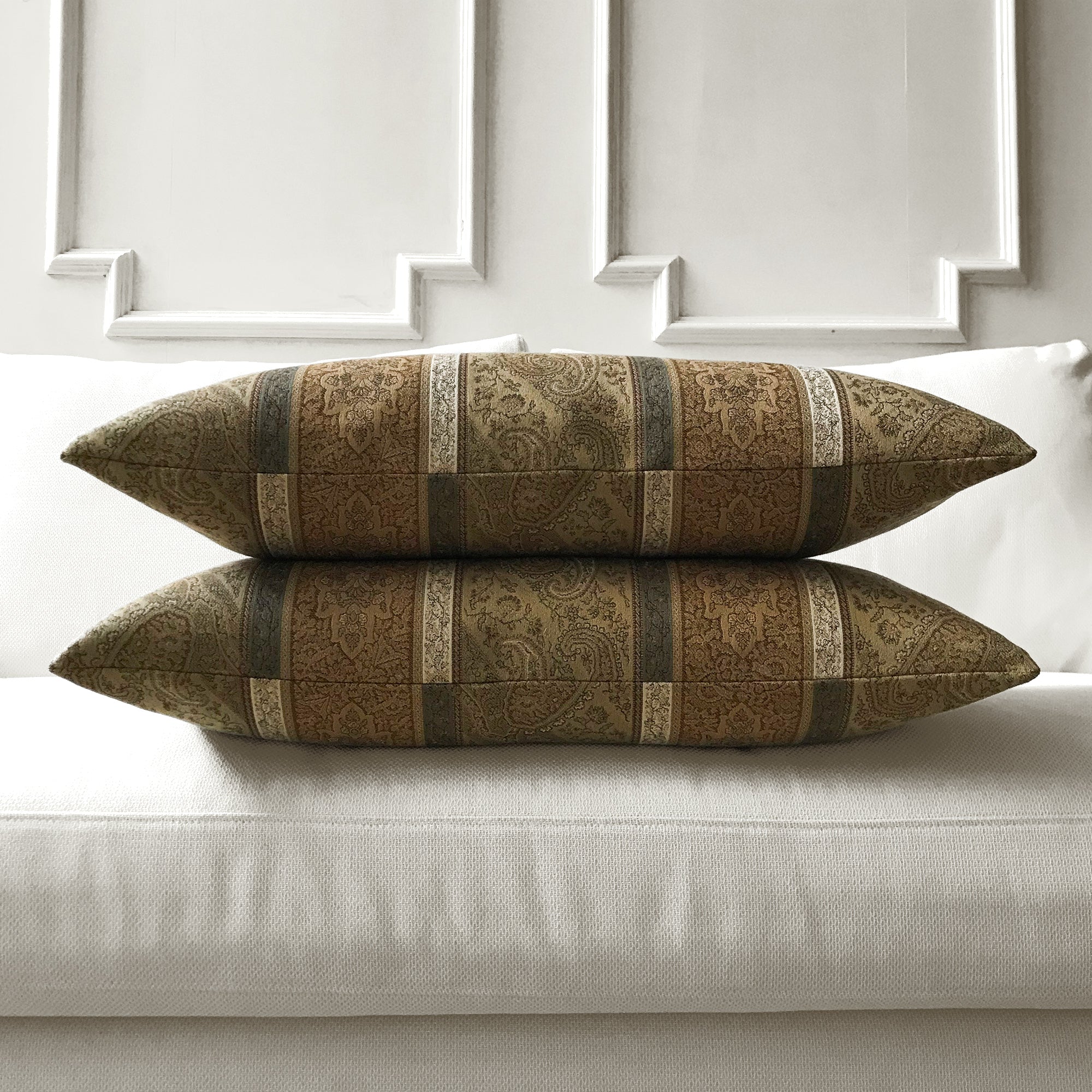 ⁌ Introduce timeless charm to your home with the Paisley Striped Traditional Lumbar Pillow Cover. Featuring a classic paisley pattern in warm earth tones with a subtle striped design, this 15x26 pillow cover adds an element of elegance and texture to your decor. Its elongated lumbar shape is perfect for enhancing sofas, beds, or chairs, offering a blend of style and comfort.